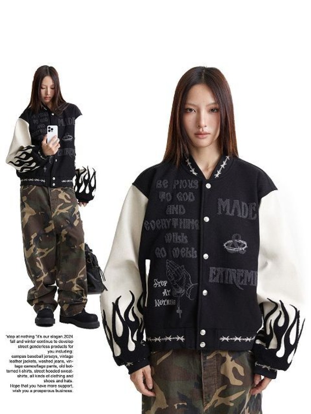 メンズファッション 刺繍入り スタジャン 男女兼用 ストリート系 ジャケット 秋冬 2024新作★