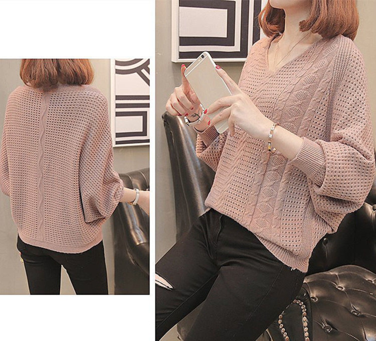大人気 Vネック ニット セーター ドルマンスリーブ 透かし編み ドルマンニット レディース トップス | Fashionshop Kuuu571 |StylishでおしゃれなFashion好きな人達へ