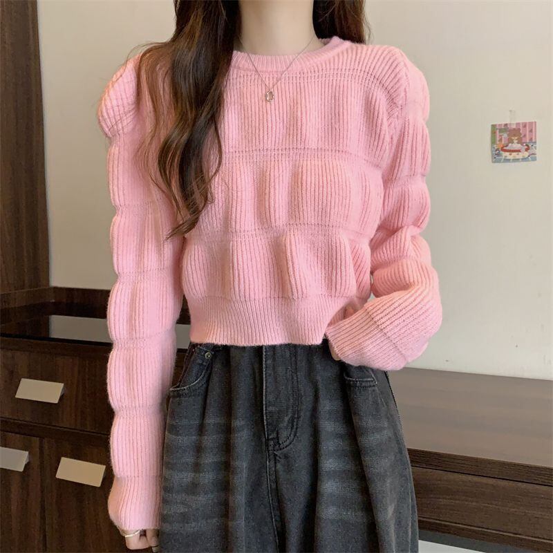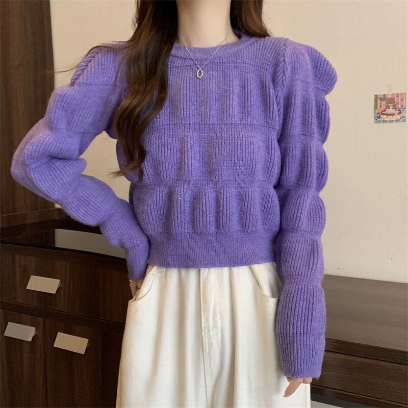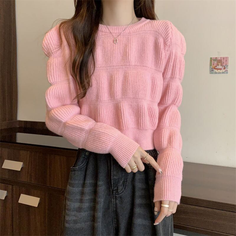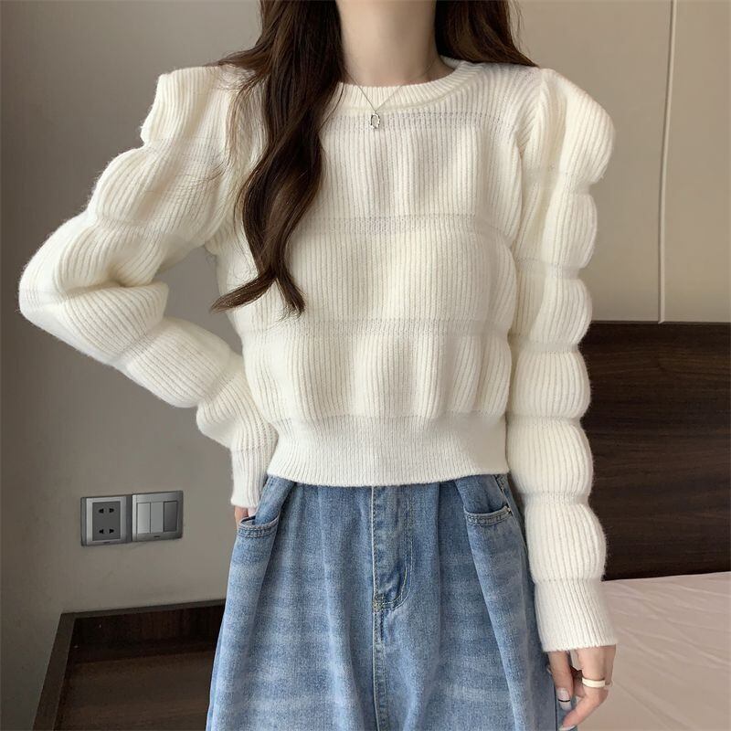 ふんわりとした立体感のあるシルエットが女性らしさをプラス ニットトップス