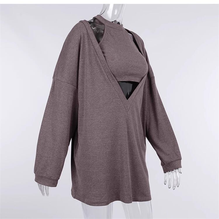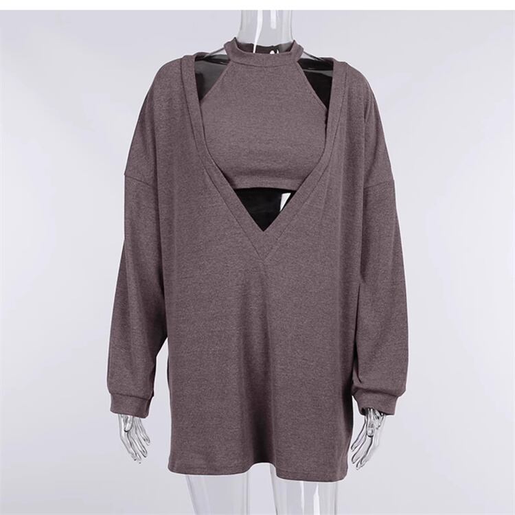 セクシーでトレンディな、ギャル系セクシーベスト+Vネック長袖ルーズプルオーバーの2点セット!スタイリッシュさと快適さを兼ね備えたアイテムです。