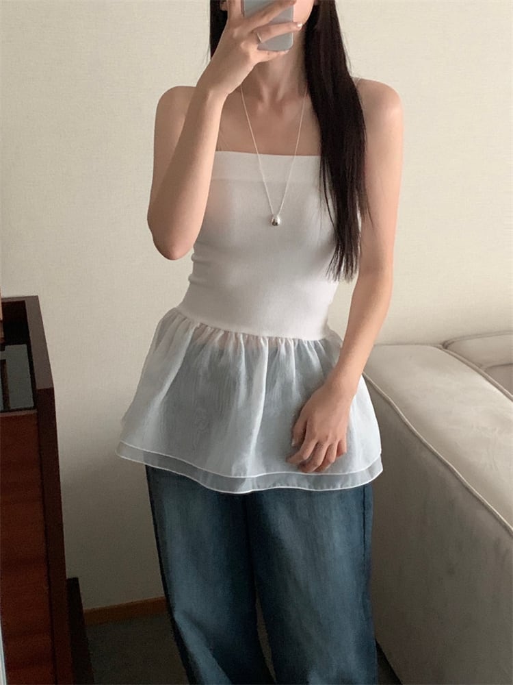 楽ちんなのにドキッとさせる、レトロモード デザイン性フリルタンクトップ ノースリーブ!トレンディな雰囲気を演出しつつ、着心地も抜群なアイテムです。