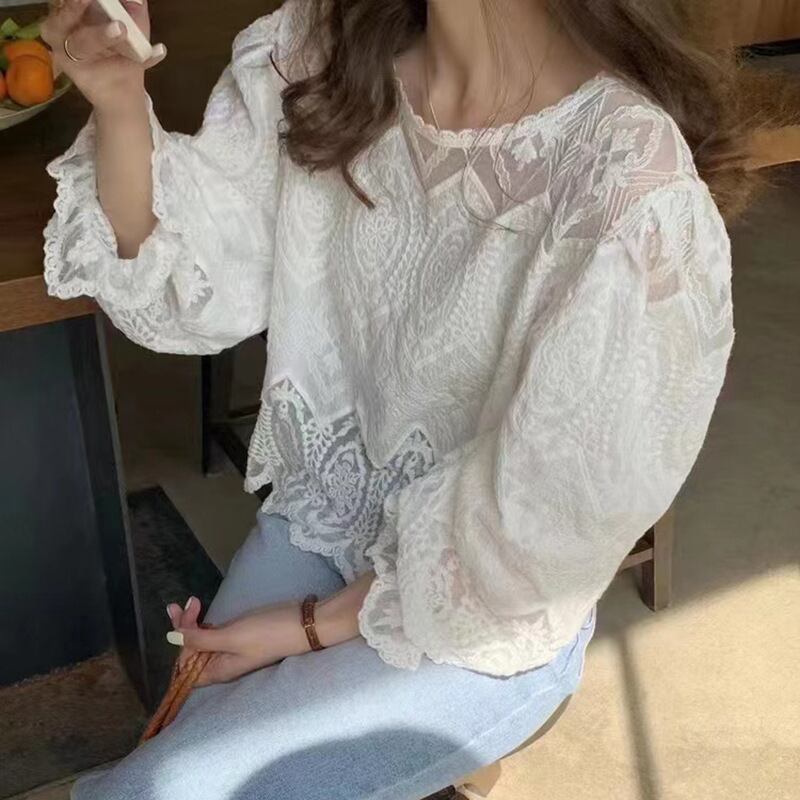 2025新作 レース トップス 透け感 エレガントラウンドネック 体型カバー 着回しが利く レディース | Fashionshop Kuuu571 |StylishでおしゃれなFashion好きな人達へ