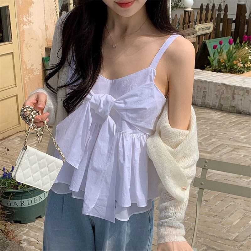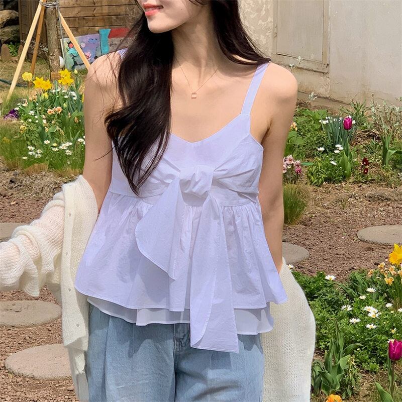 2025年春夏の新作、トレンド感満載の韓国風リボンキャミソールが登場!洗練されたデザインで、カジュアルから特別な日まで幅広くコーディネートできるアイテムです。