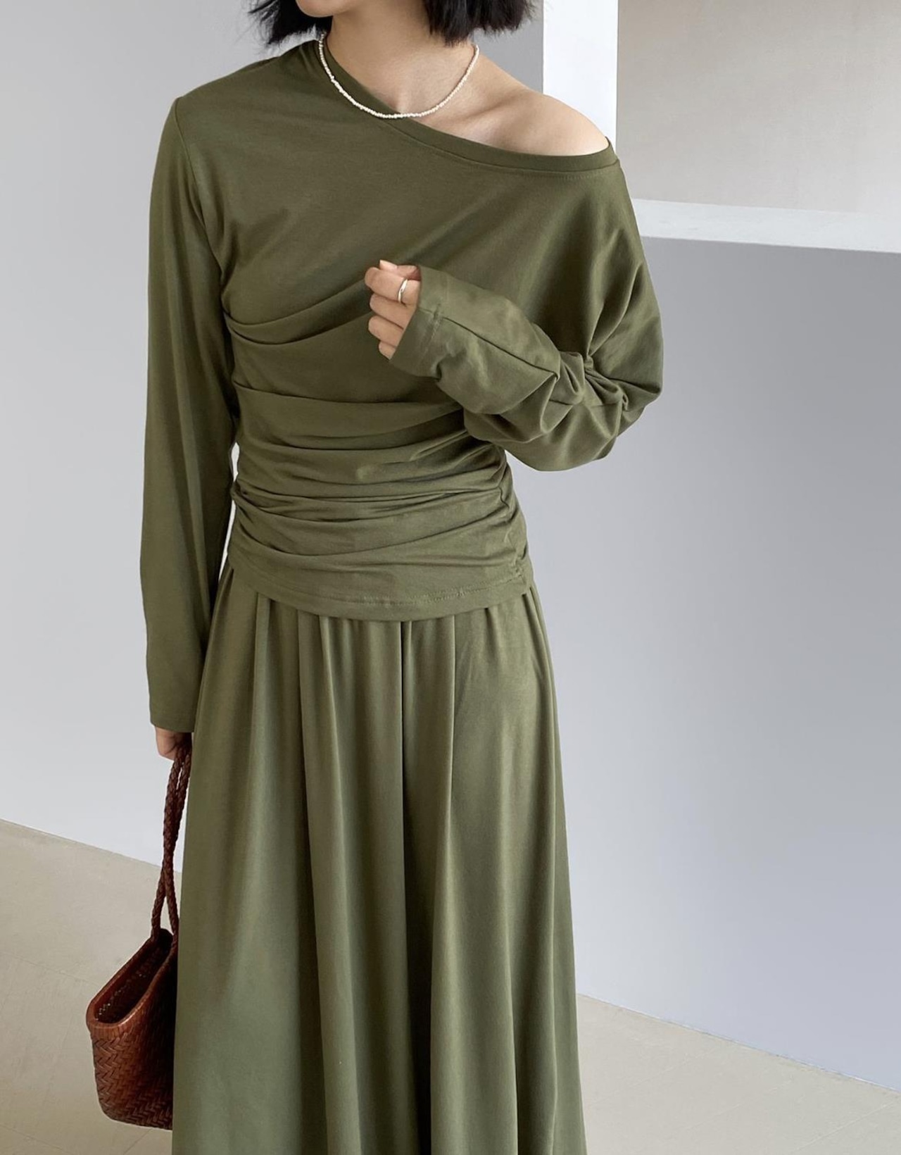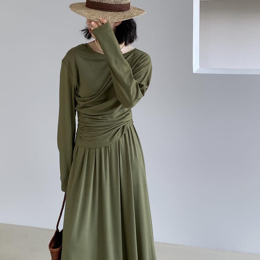 2025年春夏の新作、魅力的なレディース二点セットが登場!プリッツスカートとTシャツがセットになったアイテムで、カジュアルな日常使いから特別な日のお出かけまで幅広くコーディネートできるデザインです。