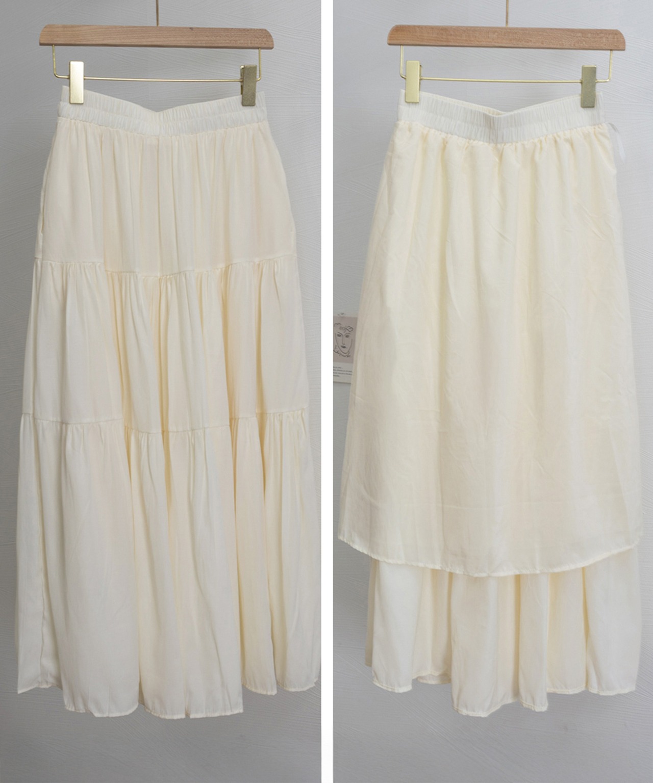 Aラインスカート白 フェミニン爽やか夏 着やせスカート無地