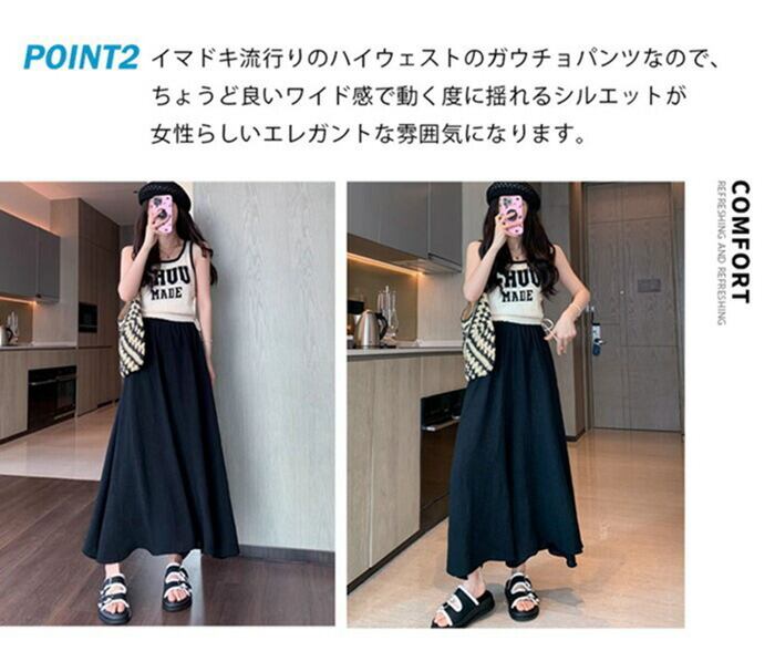 夏の日差しに映える軽やかワイドパンツ登場♪