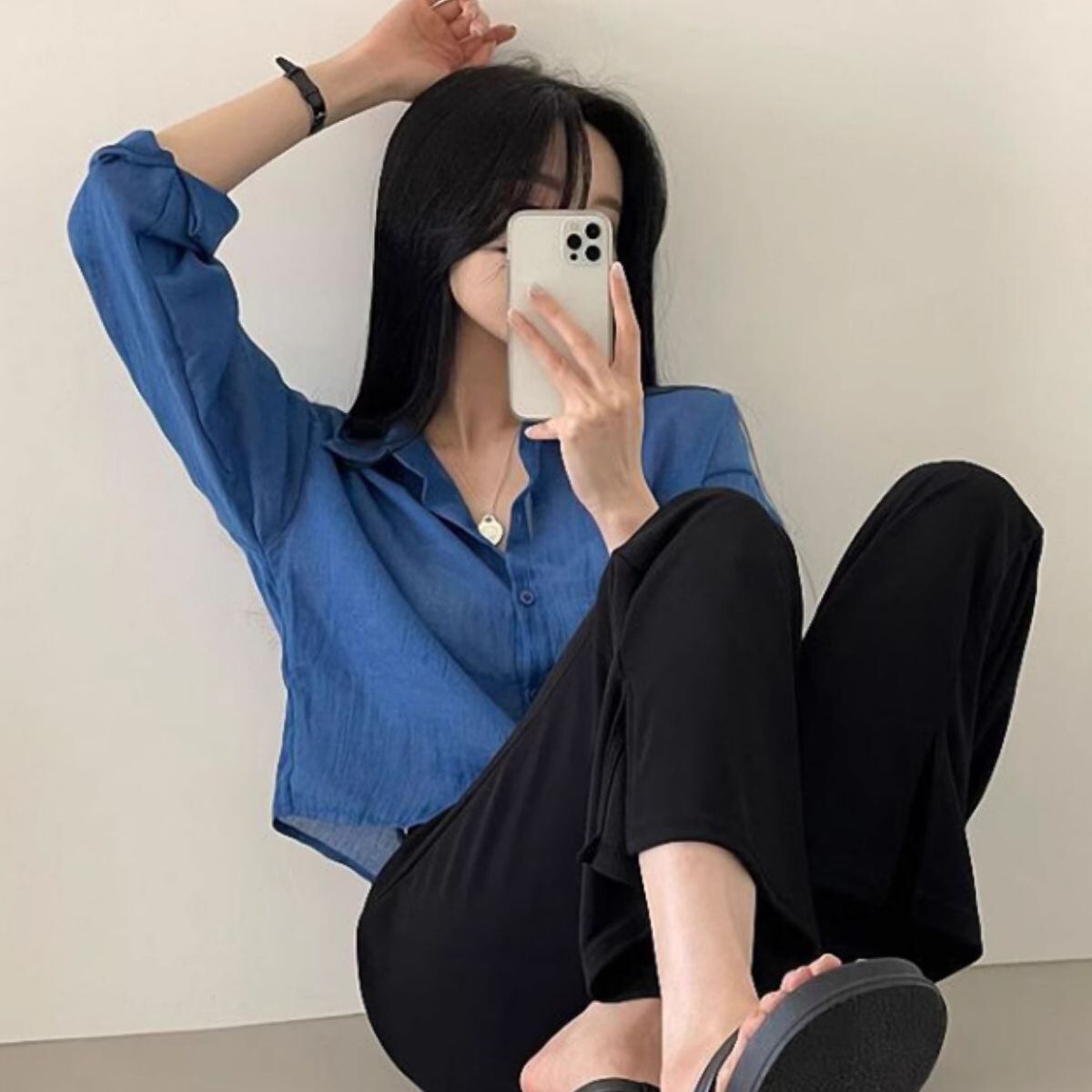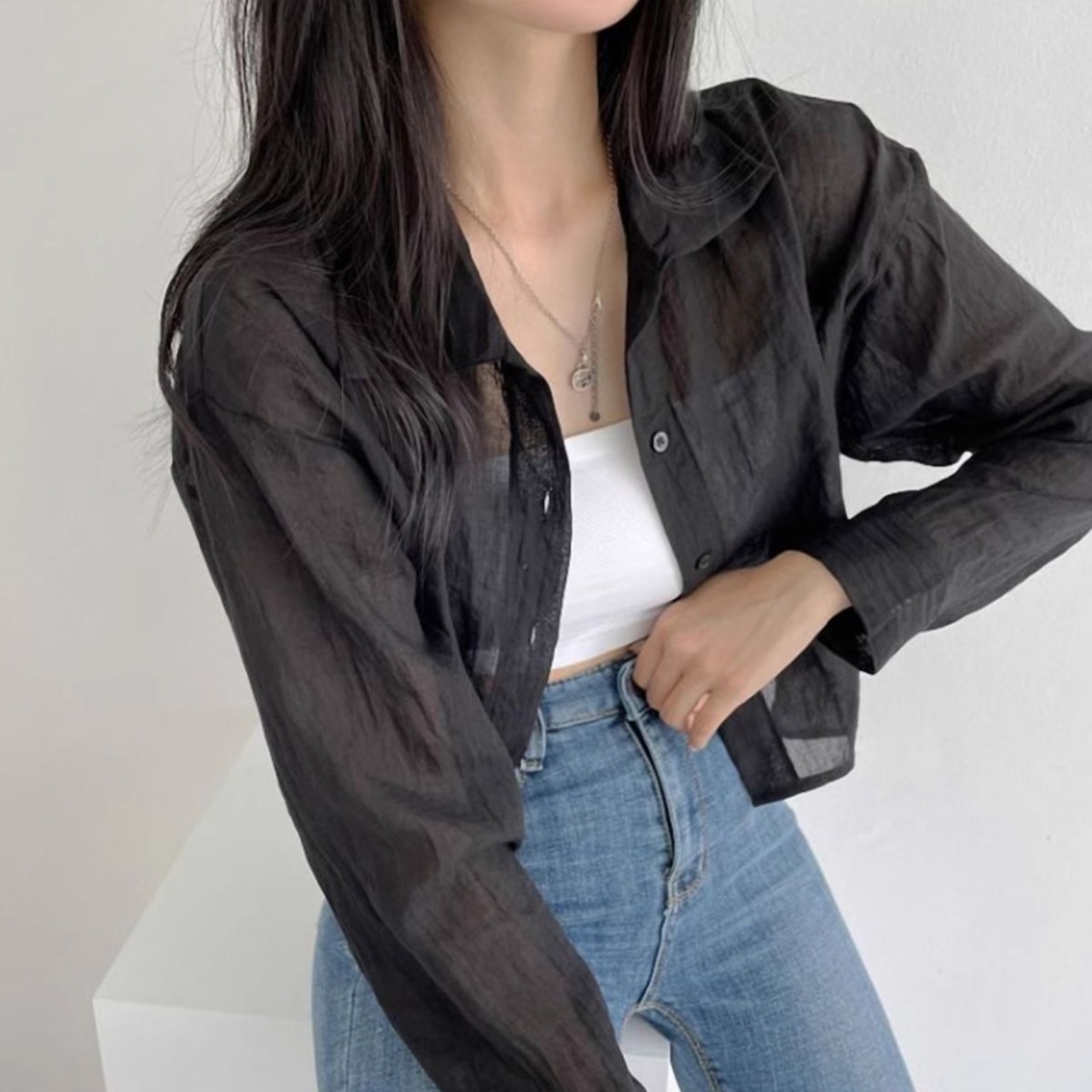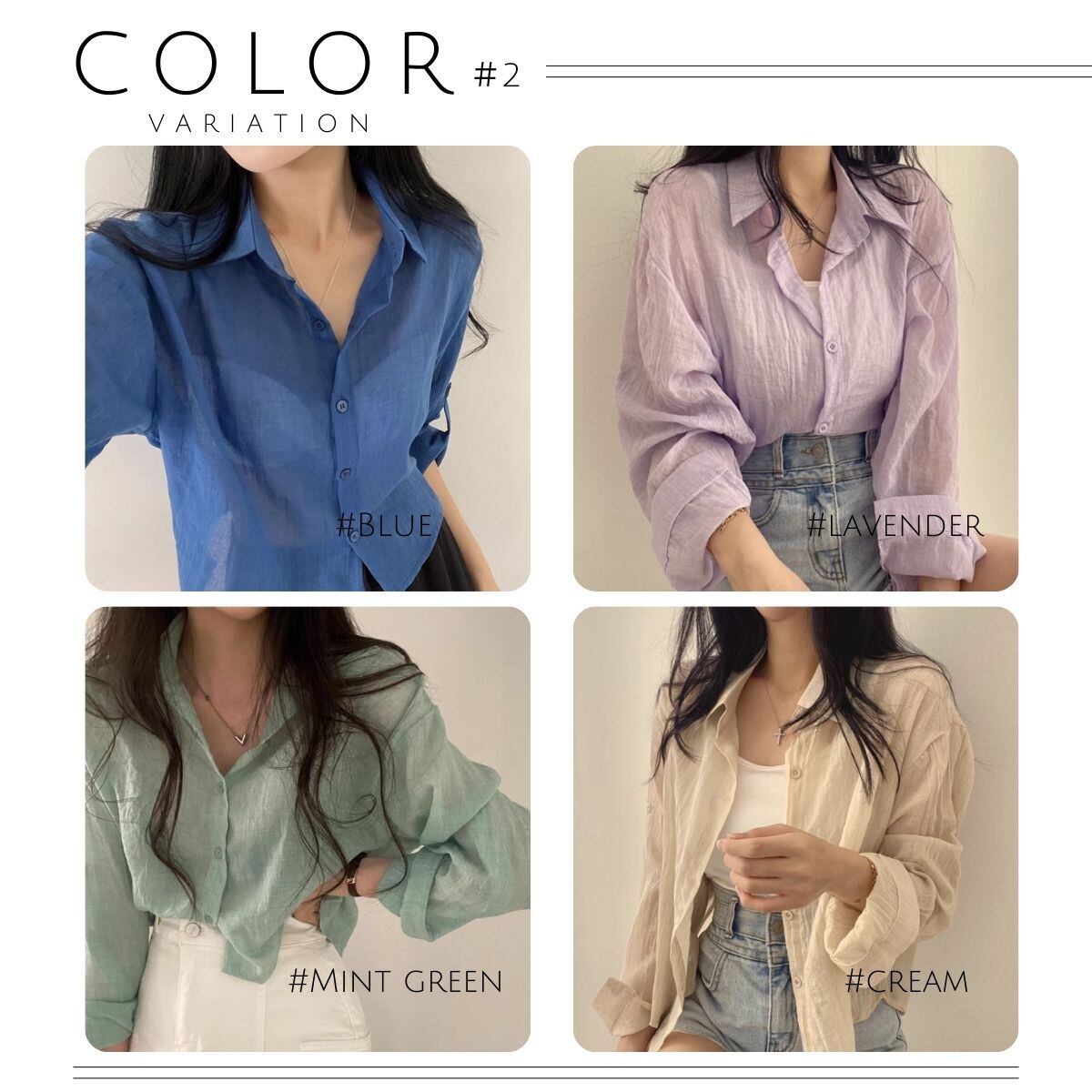 -ガーゼの手触りで心地いい素材のシアー開襟シャツです。
