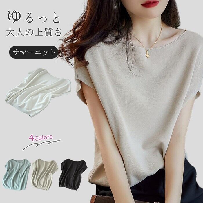 「オシャレ感UP!サマーニット レディース 半袖 無地 上品 通勤着」