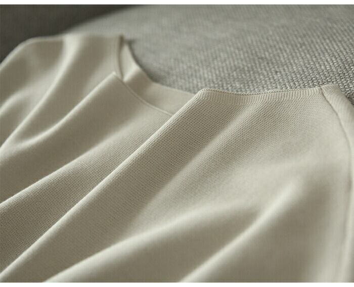 ●ドロップショルダーからの切りこみラインが腕をスッキリと細く見せ、女性らしさを引き出すシルエットになっています。
