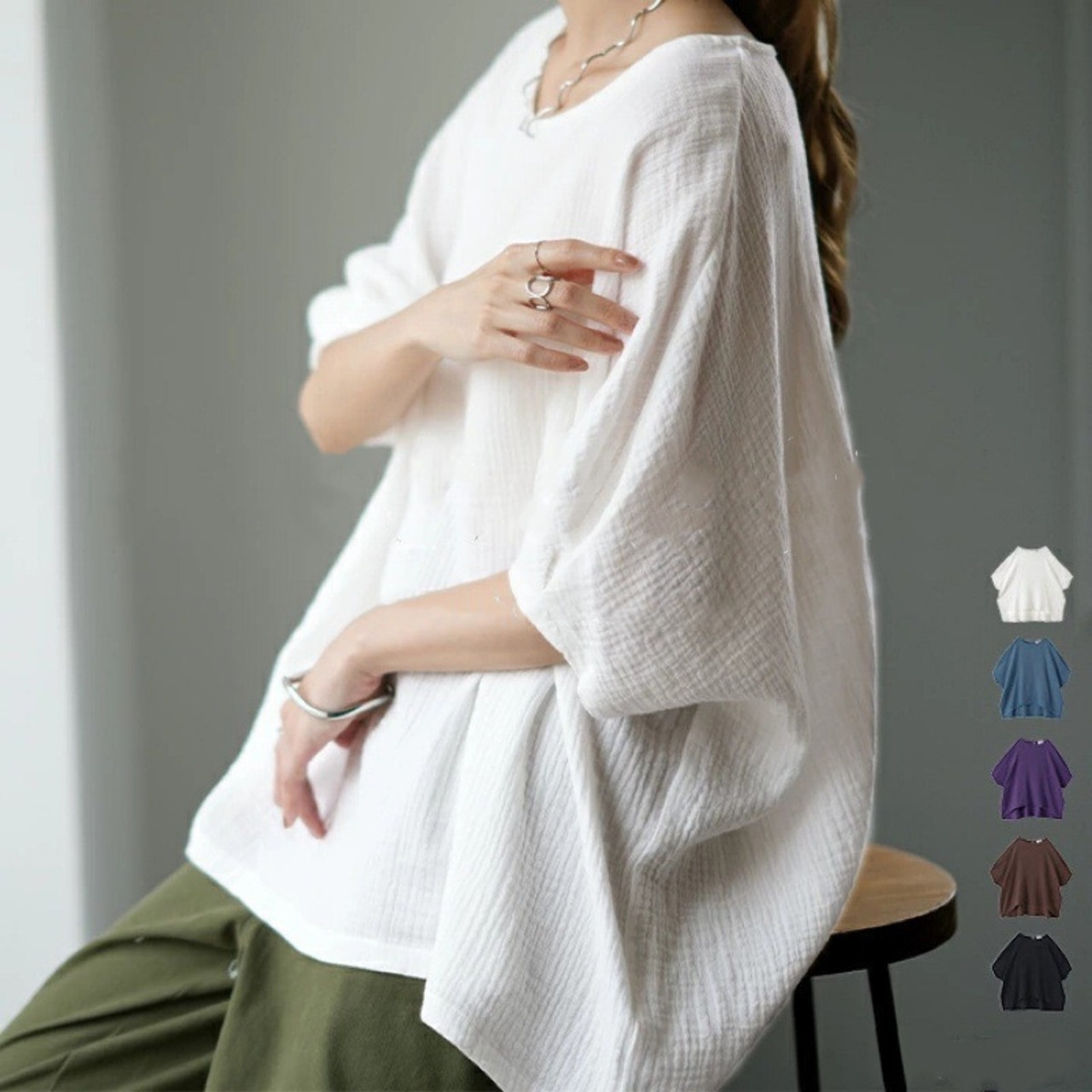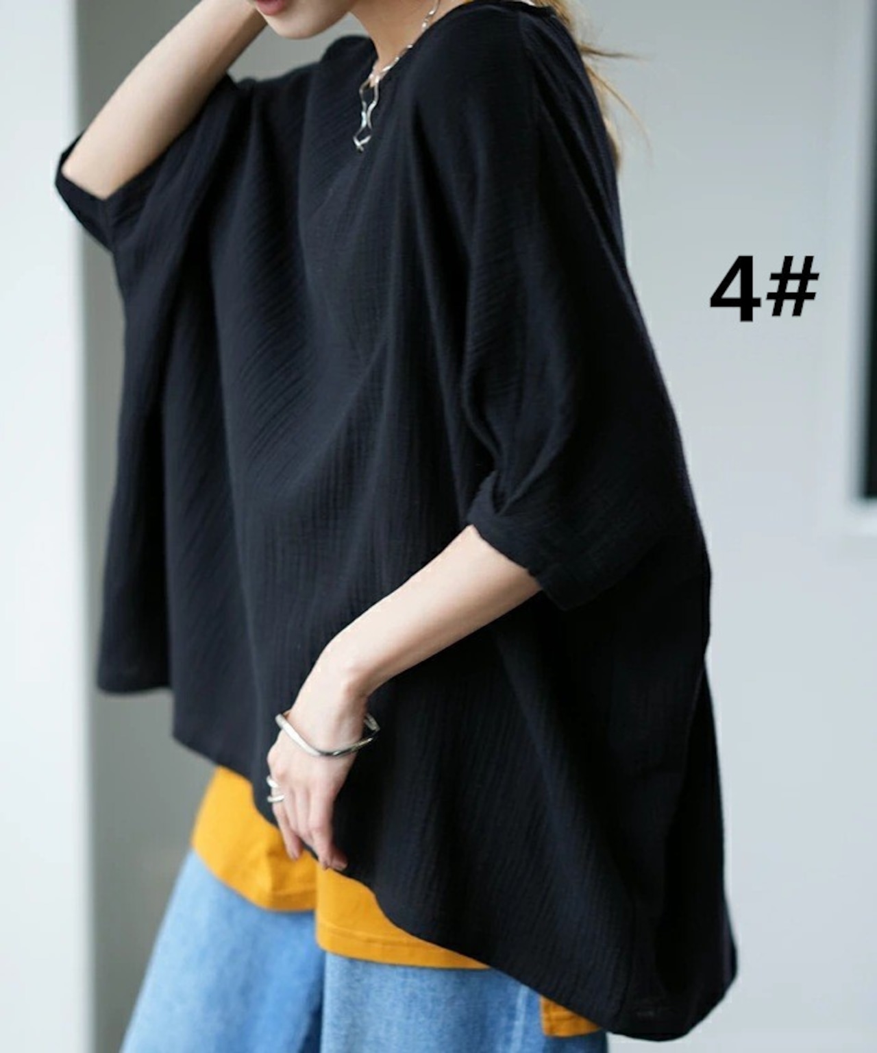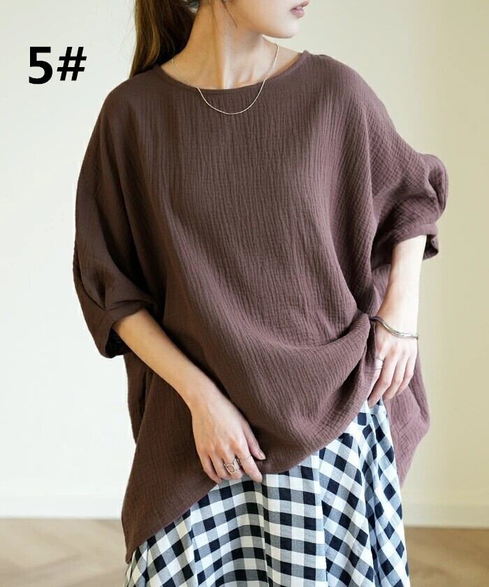 トップス レディース プルオーバー シャツ ラウンドネック ビッグシルエット カジュアル 体型カバー | Fashionshop Kuuu571 |StylishでおしゃれなFashion好きな人達へ
