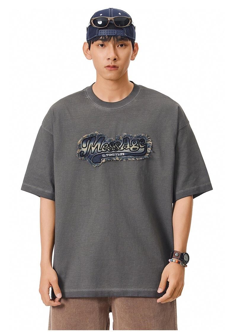 「レトロな魅力を纏う!アメリカンヴィンテージ風 ワッペン刺繍加工 半袖Tシャツ」