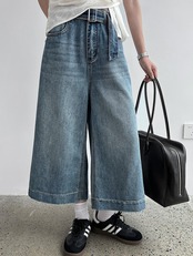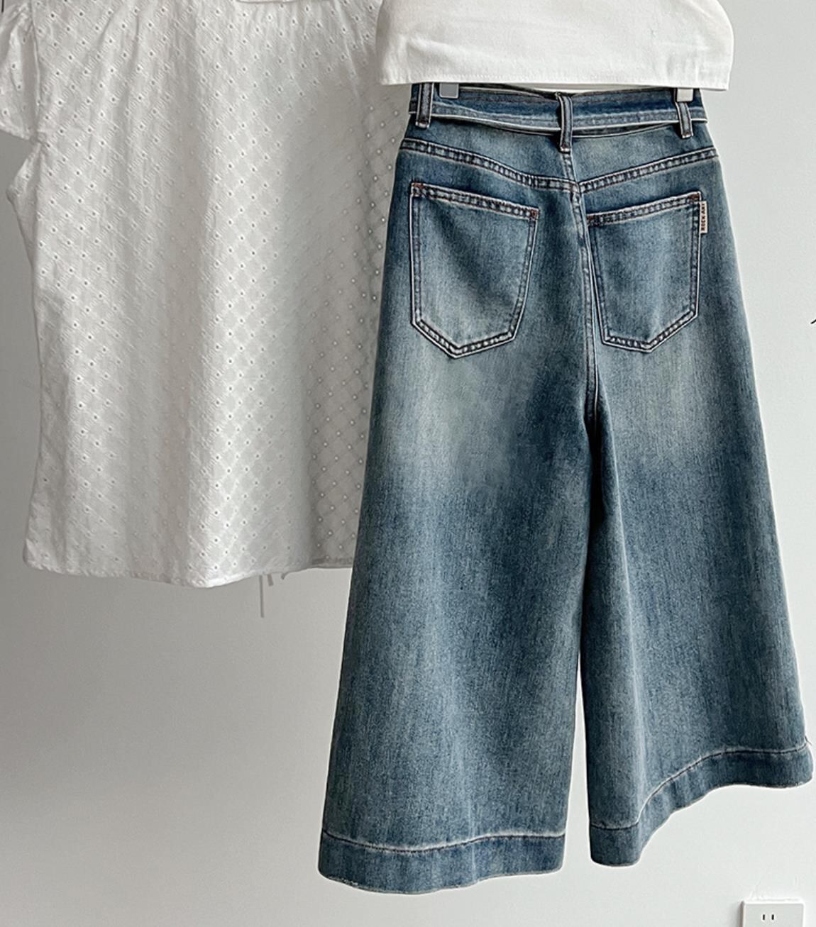 「大人可愛いカジュアルスタイル!レディース ボトムス ワイドパンツ 七分丈 韓国風 ジーンズ デニム カジュアル」
