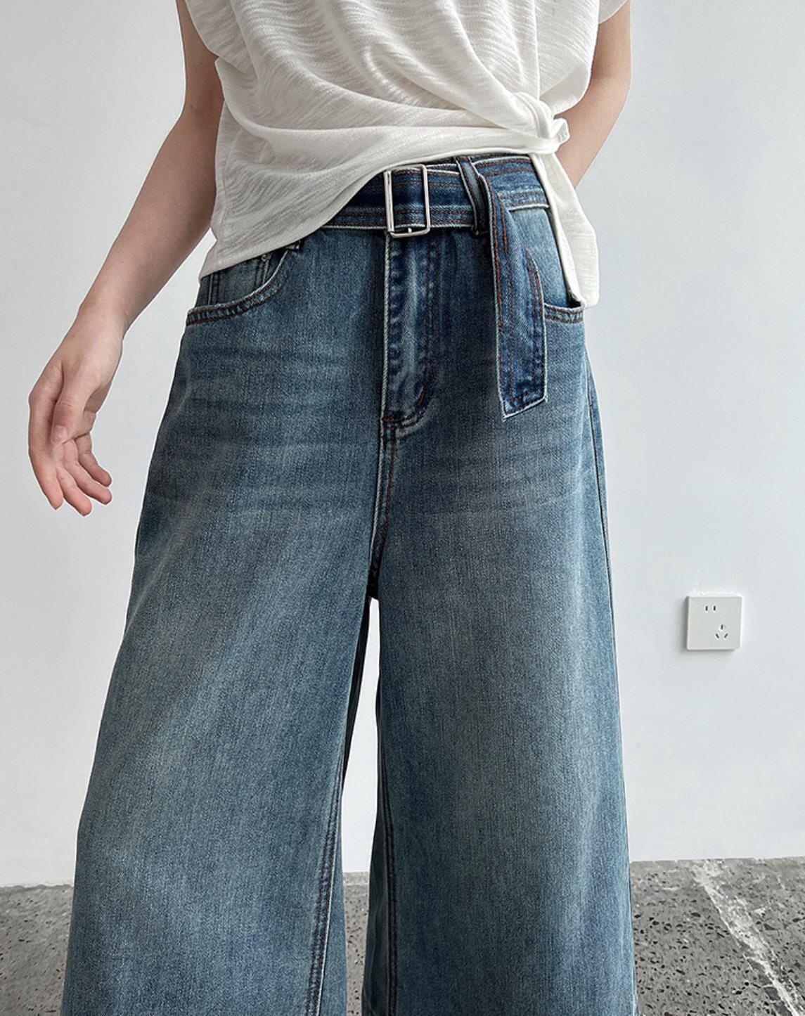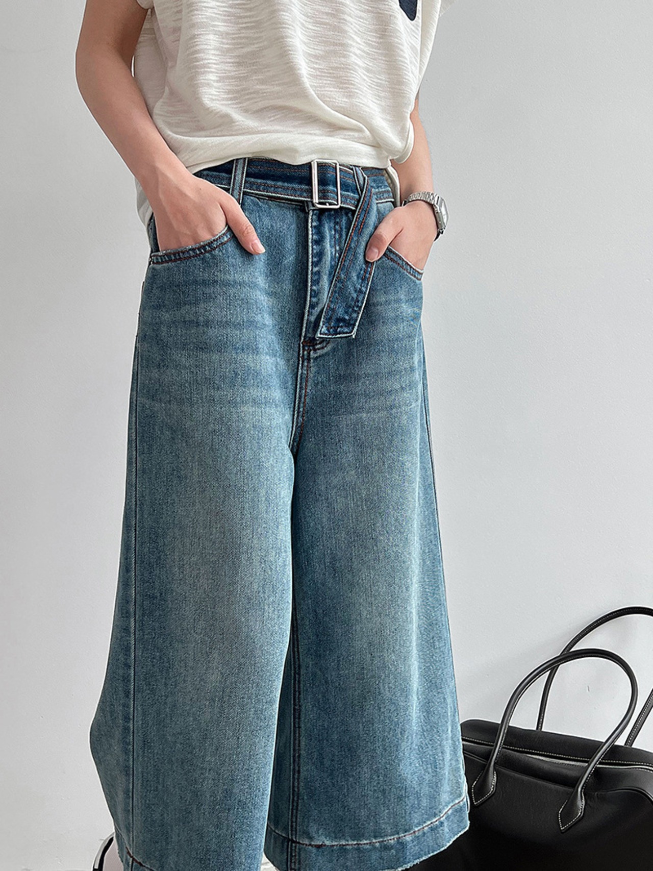 ●2025年新作のレディース ワイドパンツ 七分丈 韓国風 ジーンズ デニム カジュアルが登場です!
