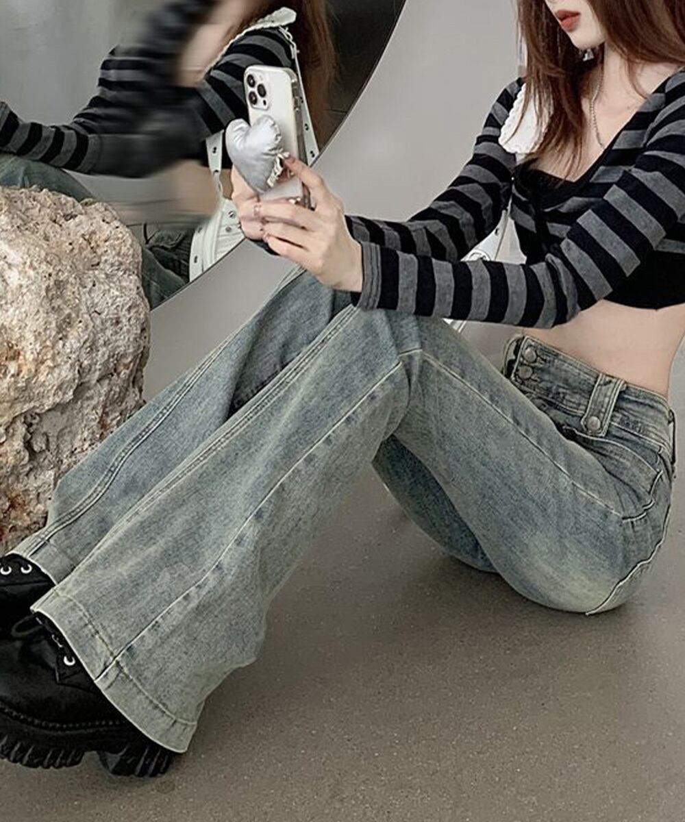 ・このセミフレアデニムパンツは、ヴィンテージ風のデザインで、トレンド感満載のお洒落アイテム!
