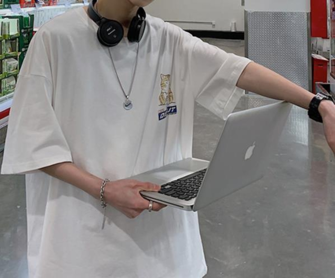 ・個性的なプリントがアクセントになり、シンプルなコーディネートを一段と引き立ててくれます。