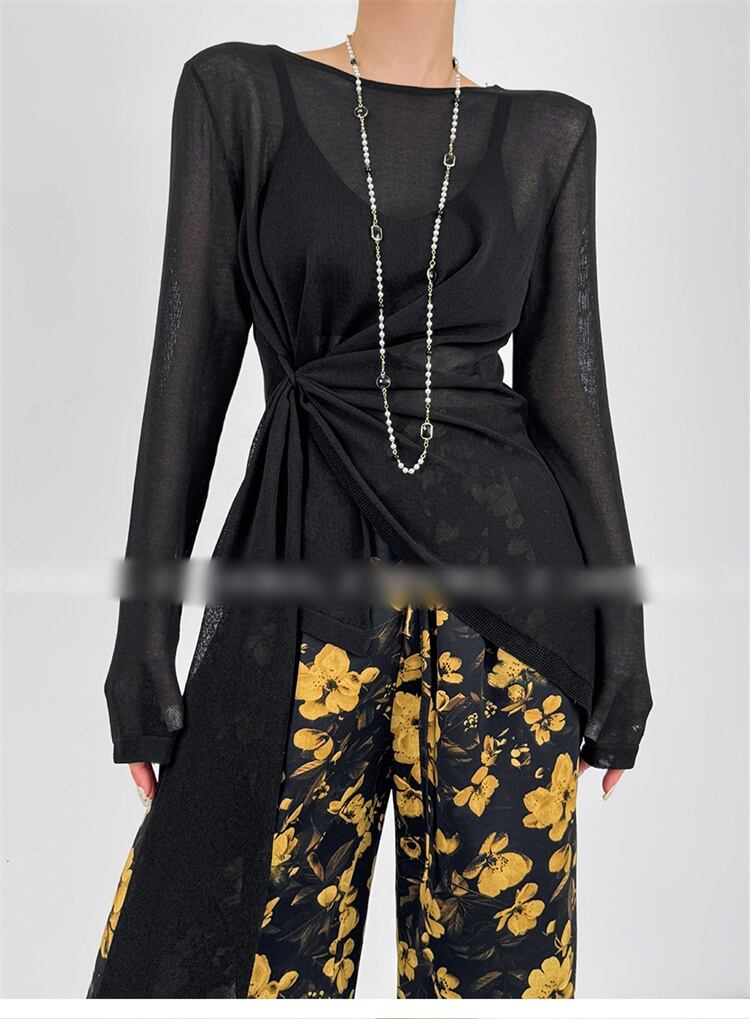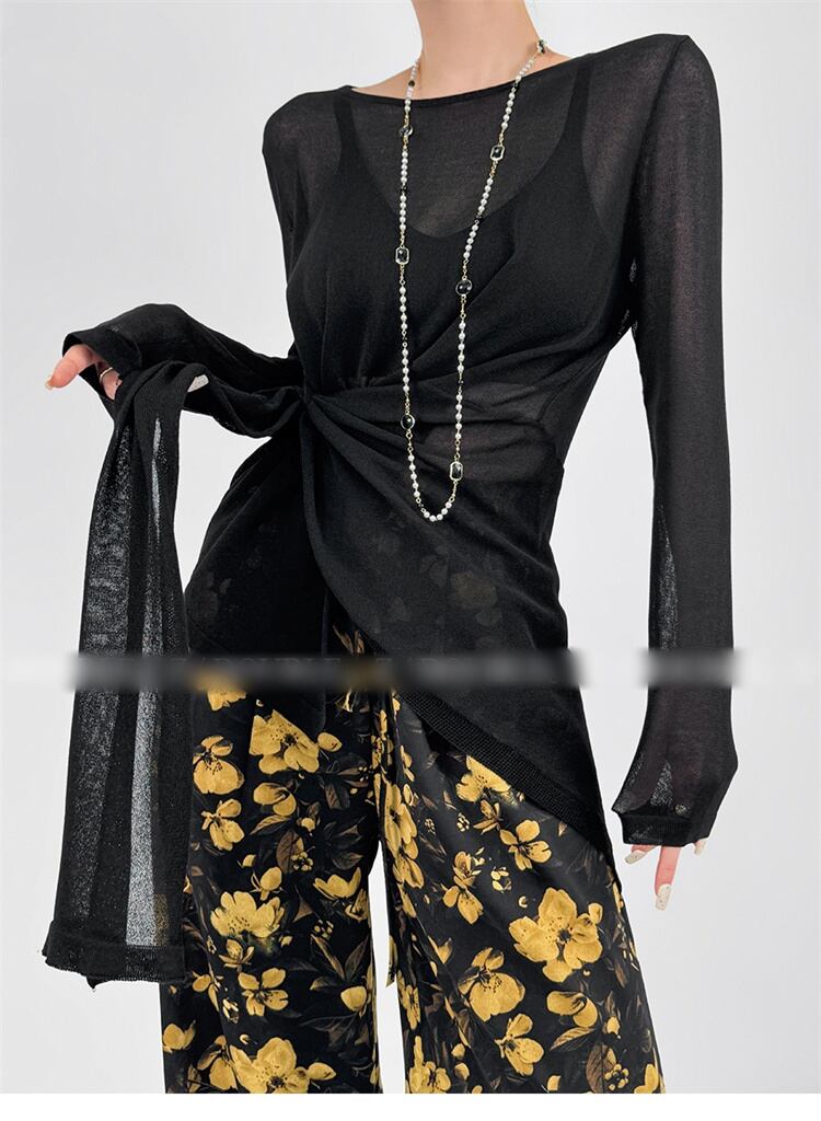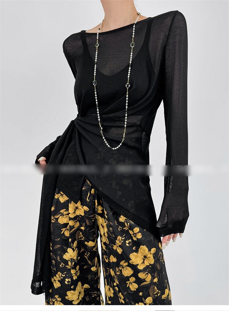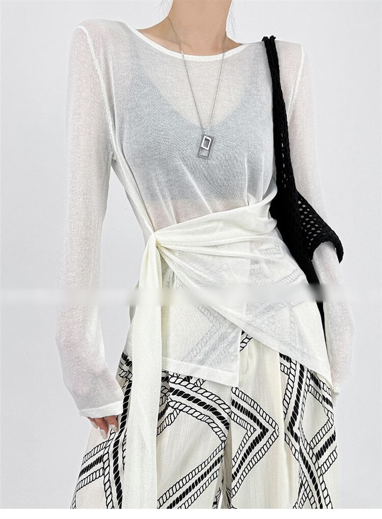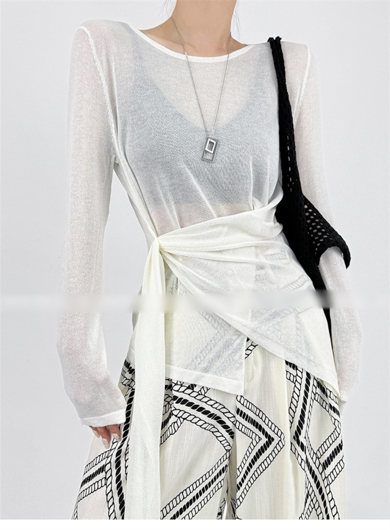 軽量素材 UVカット加工 ニットソー アシンメトリー開襟 ヒモ付き レイヤード対応 サマー向けトップス | Fashionshop Kuuu571 |StylishでおしゃれなFashion好きな人達へ