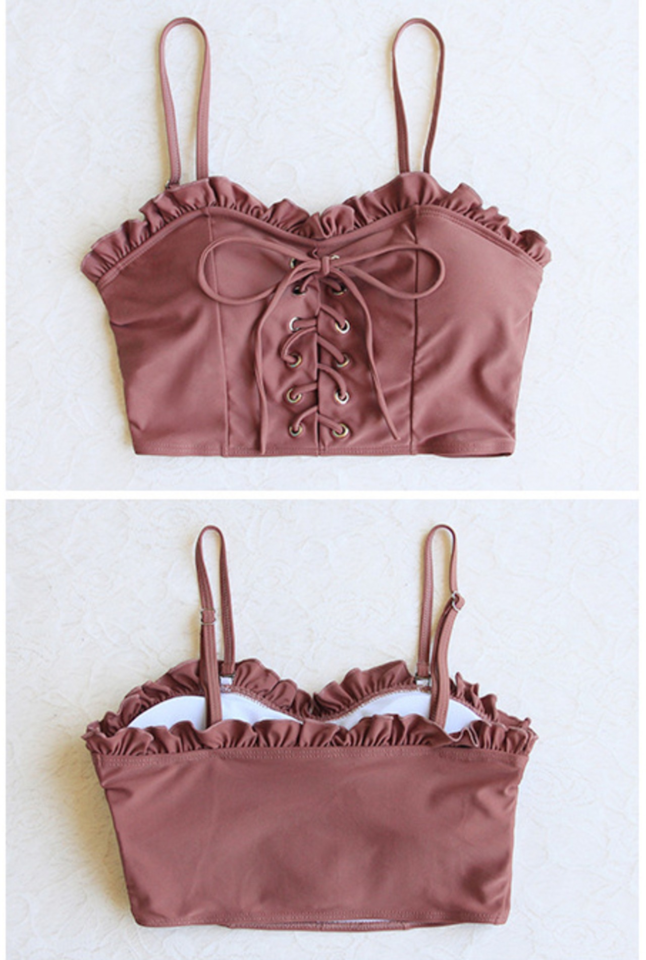 ・デザインされたブラの谷間の紐は、より一層セクシーさをアピールしてくれます。