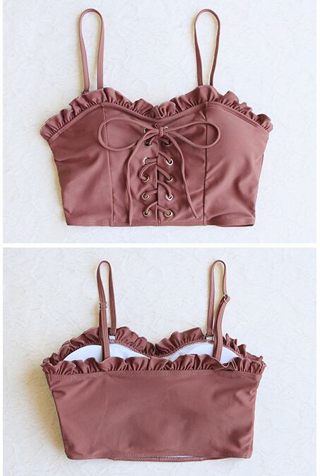 落ち着いた大人の色調にコントラストされたビキニ水着3点セット