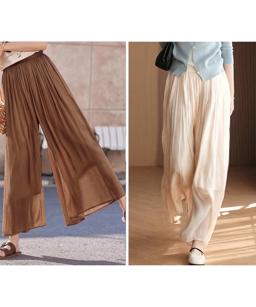 細見え ゆったり/涼しいフレアパンツ/薄手イージーパンツ