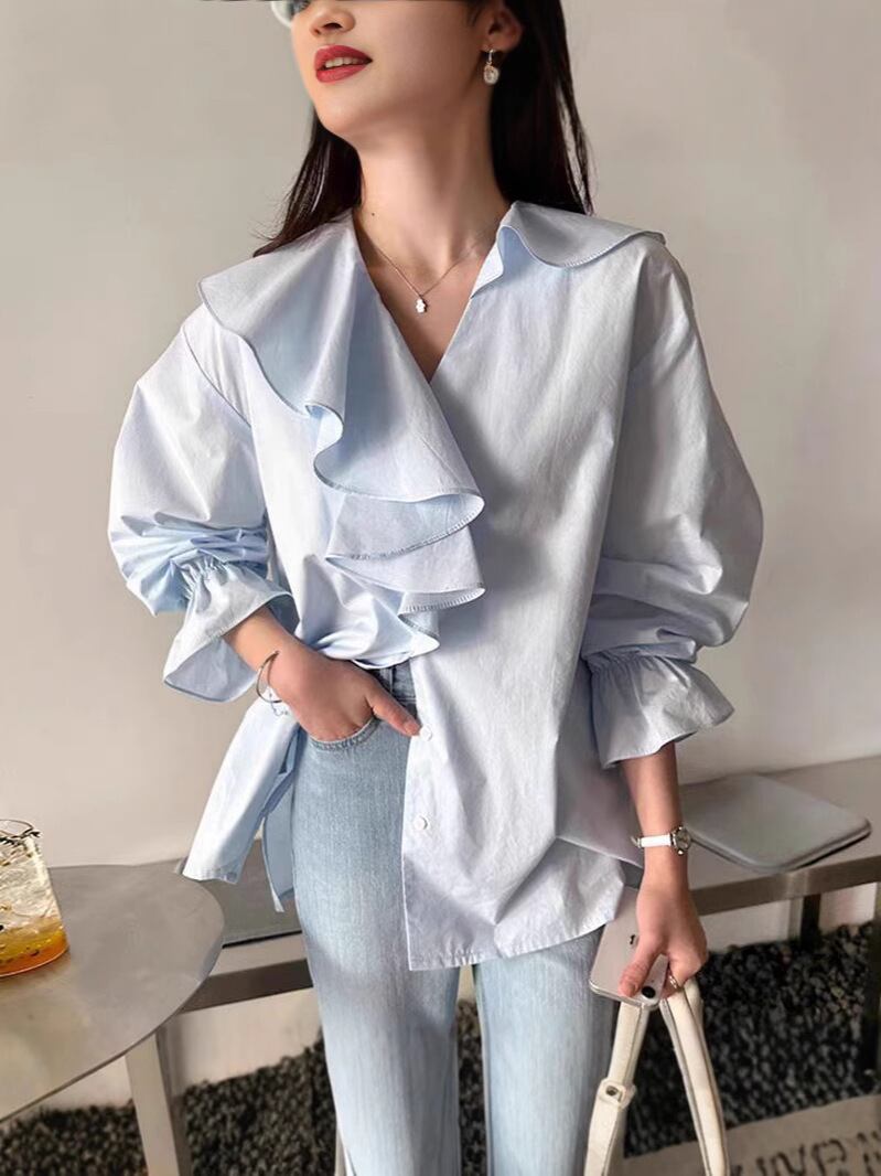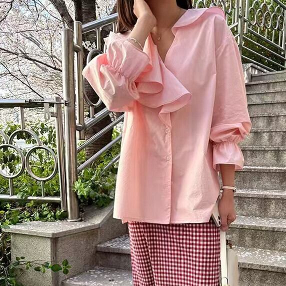 可愛さ溢れるSweet系の長袖Vネックブラウスが入荷しました!シンプルでありながら、どんなコーディネートにも合わせやすいデザインが魅力です。着心地も良く、肌触りも抜群なので、夏の日差しの下でも快適に過ごせます。
