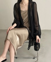 【2025年春夏新作】シアーカーディガンが登場しました!シースルータイプのロングカーディガンは、軽やかな着心地と程よい透け感が魅力です。バルーンスリーブが女性らしさを引き立て、カジュアルなスタイルにぴったりの一着です。