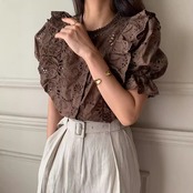 夏にピッタリな素材のトップスは今季注目のアイテム。
