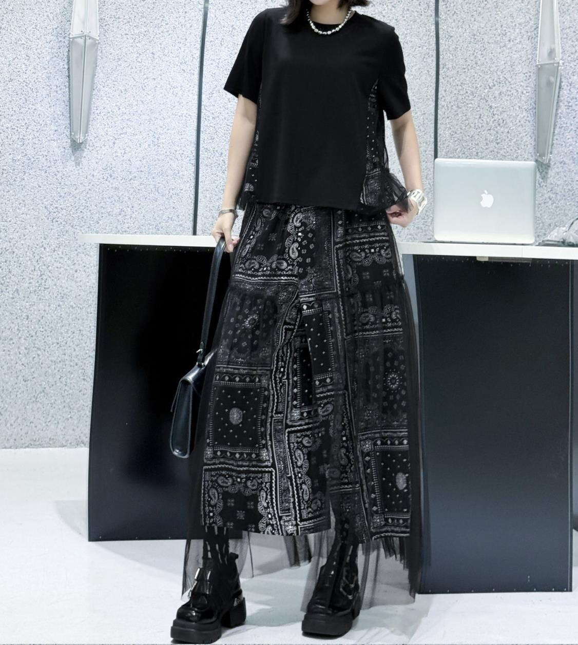 軽やかなTシャツと合わせて、シンプルながらも個性的なスタイルを演出。