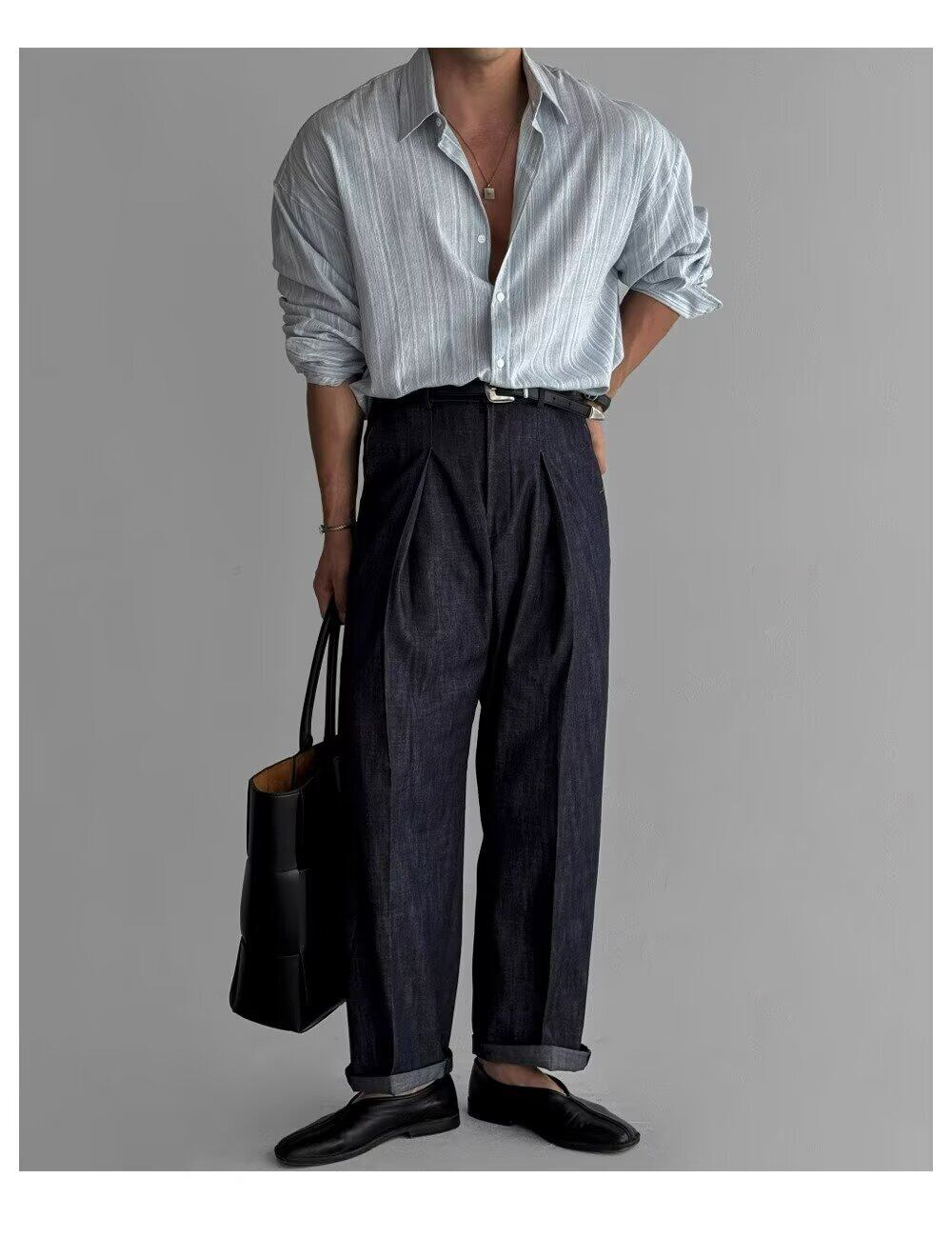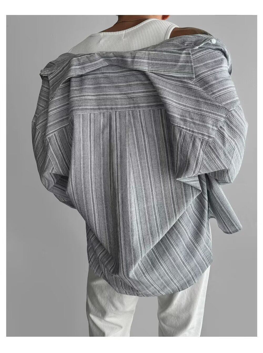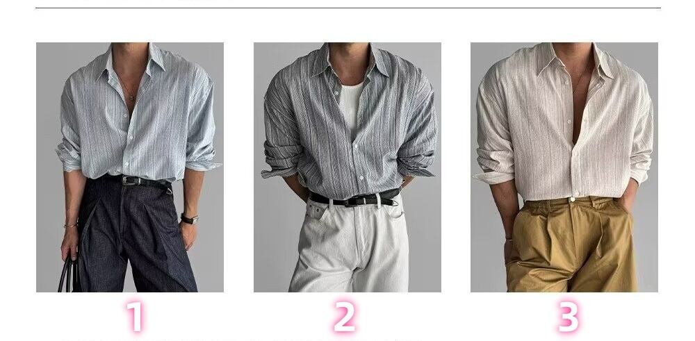 2025春秋新作 メンズ 男 トップス 長袖 ボーダー柄 シャツ ブラウス コート アウター カーディガン | Fashionshop Kuuu571 |StylishでおしゃれなFashion好きな人達へ