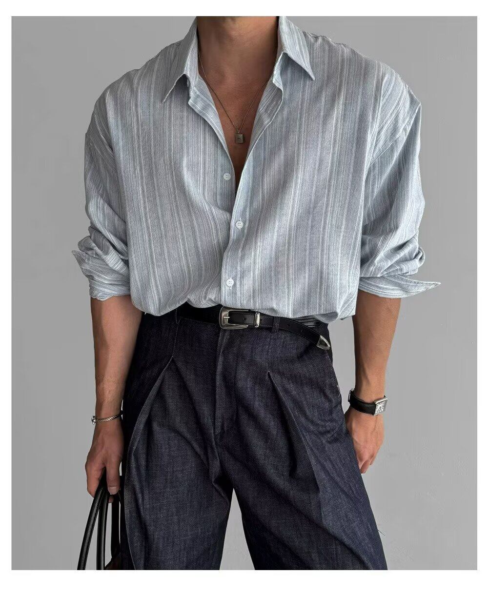 春秋にぴったりのボーダー柄デザインが目を引く、メンズ長袖シャツです。韓国風のスタイリッシュなシルエットは、デイリーユースに最適で、様々なおしゃれスタイルを引き立てます。軽やかで快適な着心地を実現しており、普段使いからちょっとしたお出かけまで幅広く活躍します。