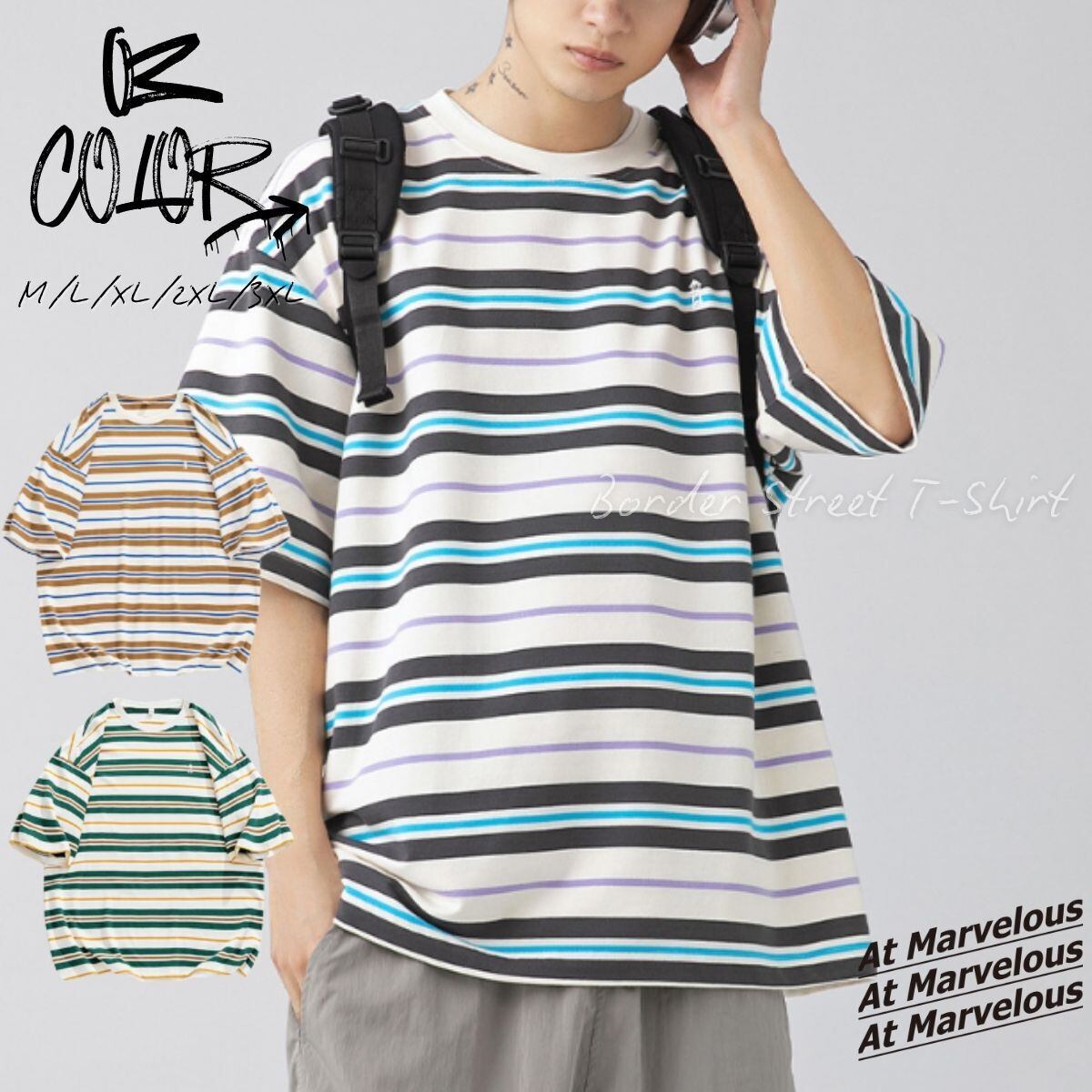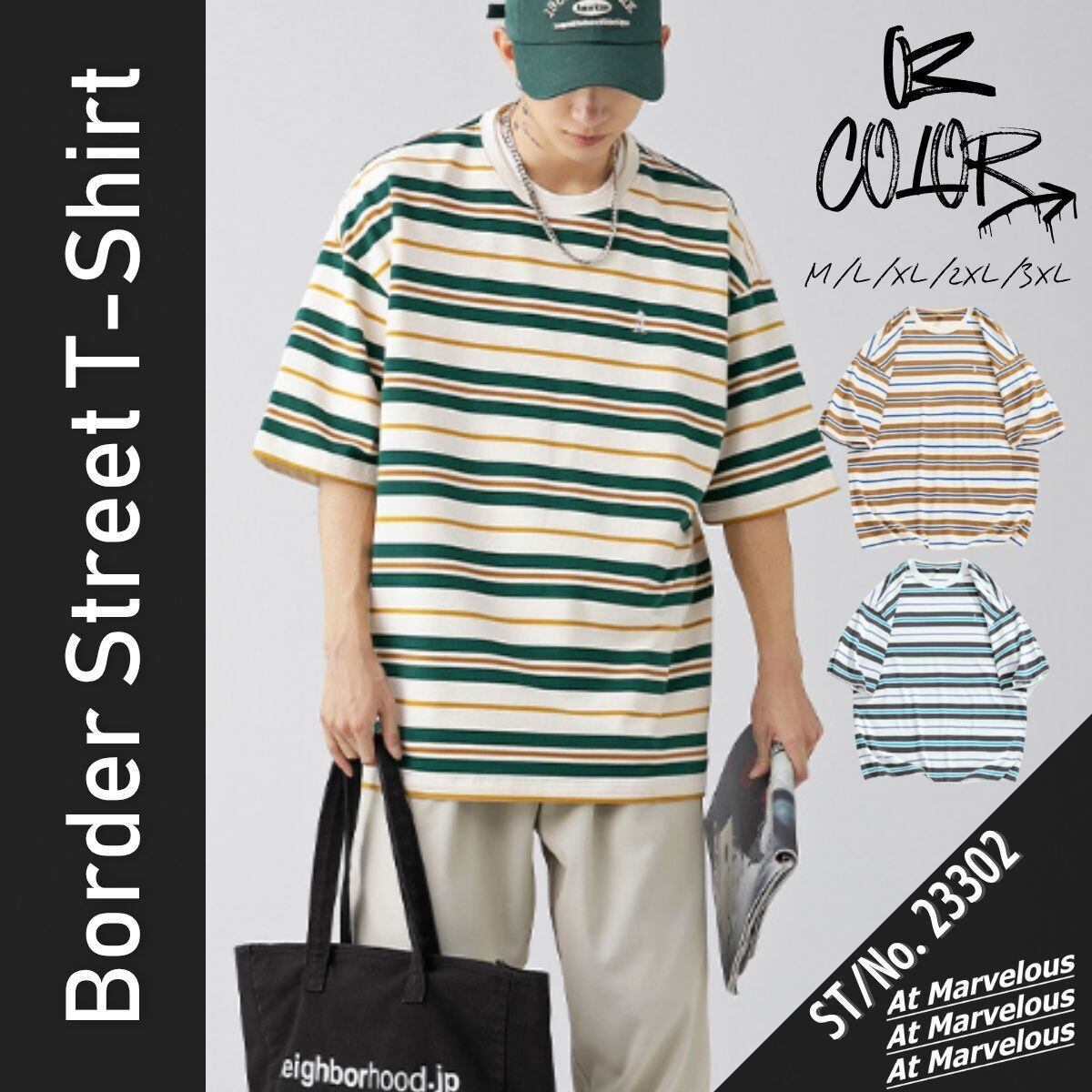 トレンド感あふれるカジュアルスタイル!2025夏新作 メンズボーダー ビッグシルエットTシャツ!