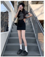 軽やかなミニ丈で夏のカジュアルコーデにぴったり。