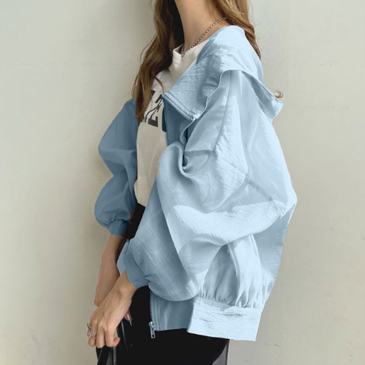 春夏のスタイルにピッタリな、軽量シアーブロゾンが新登場!このジャケットは、透け感のある素材で、涼しさを保ちながらおしゃれを楽しむことができるアイテムです。冷房対策にも最適で、カジュアルな日常から特別なシーンまで幅広くご利用いただけます。