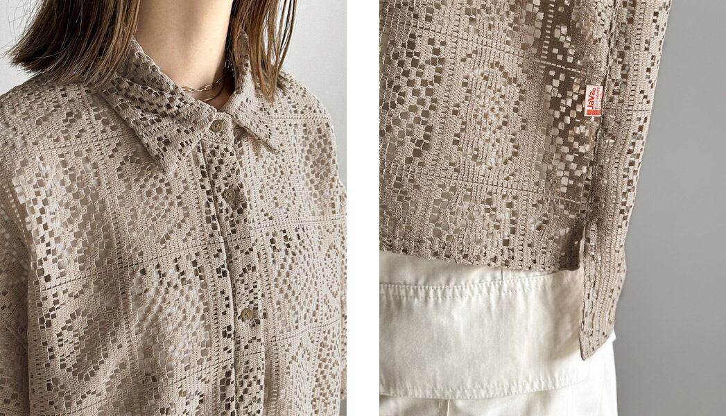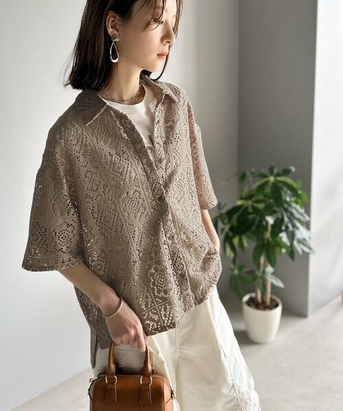 ・ゆとりのあるボックスシルエットが今っぽくも、上品な透け感と落ち感のあるレース素材が大人な印象に。
