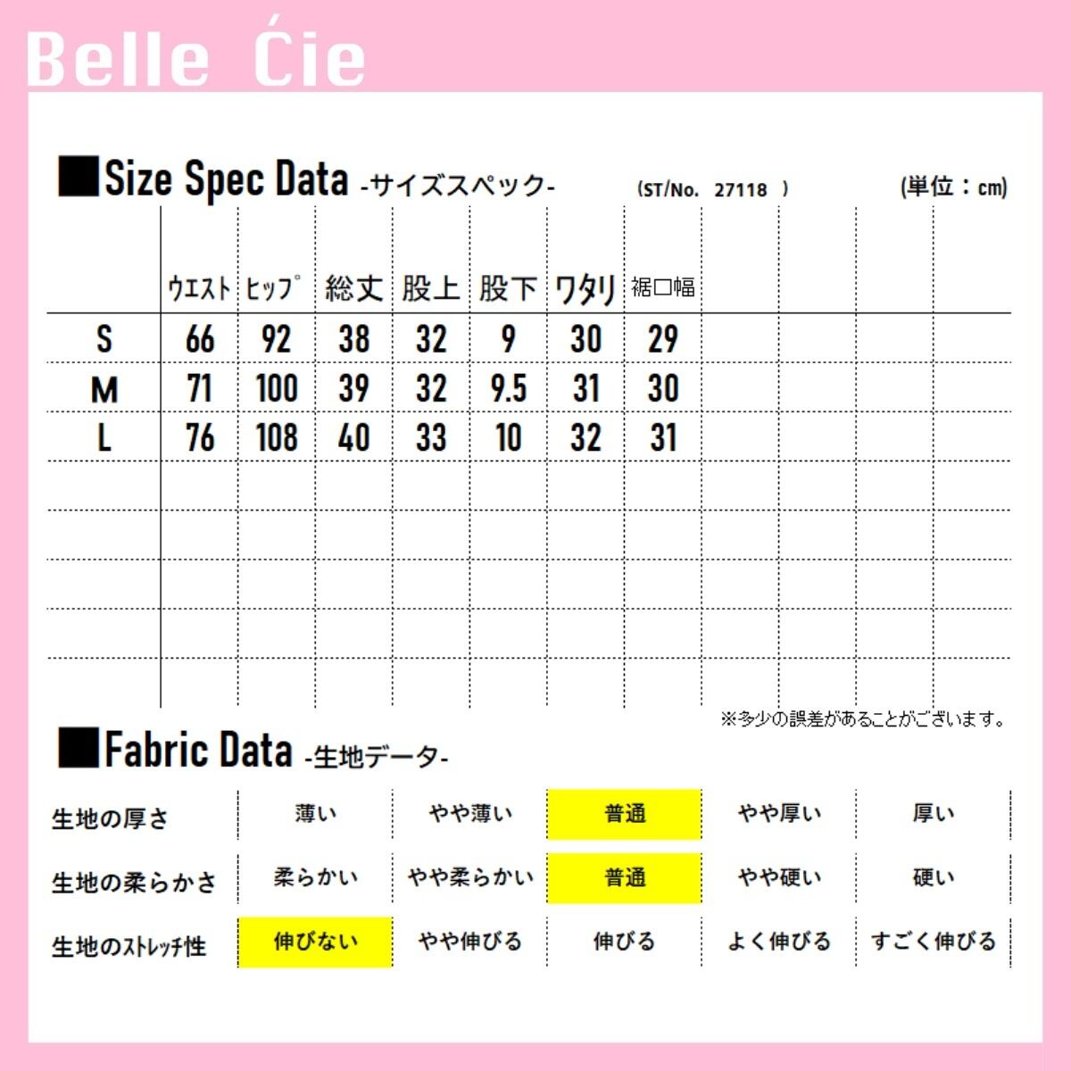 【S】:ウエスト66 ヒップ92 総丈38 股上32 股下9 ワタリ30 裾口幅29