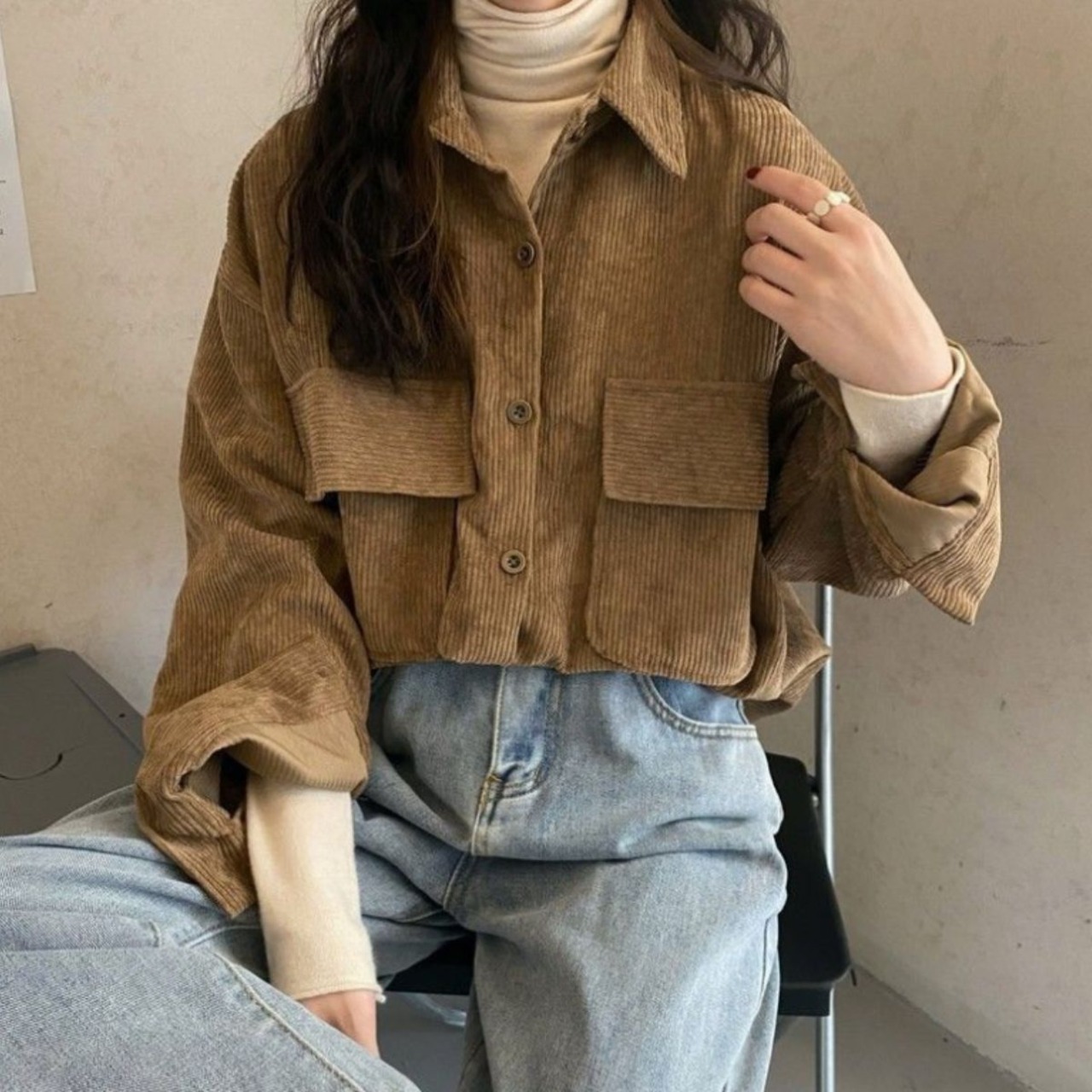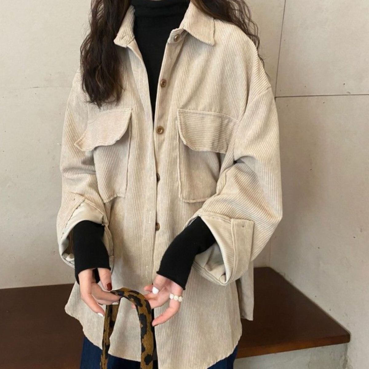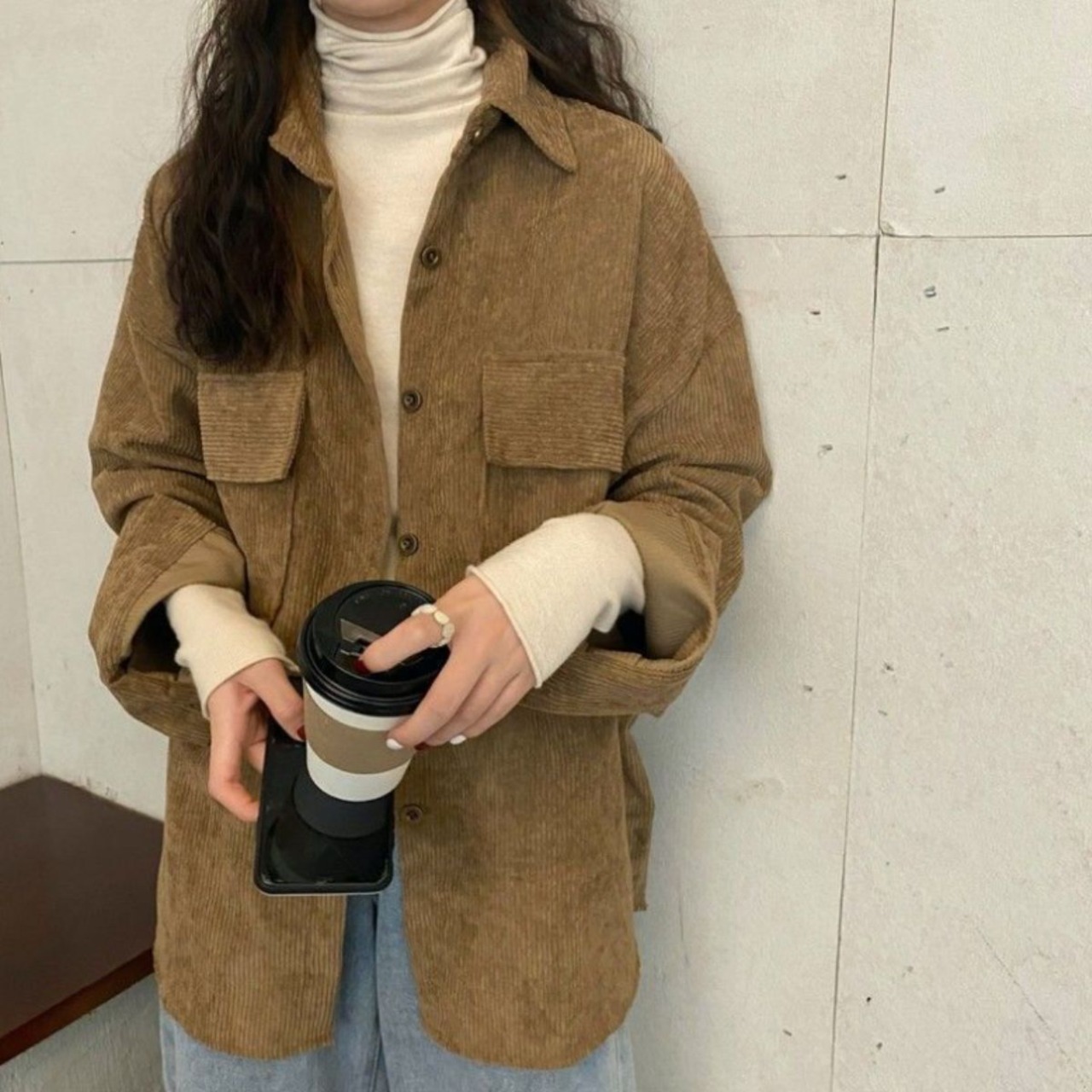 春秋に活躍するレディース・コーデュロイの長袖オーバーシャツが登場! 韓国ファッションを取り入れたおしゃれなデザインで、カジュアルからきれいめスタイルまで幅広く対応します!