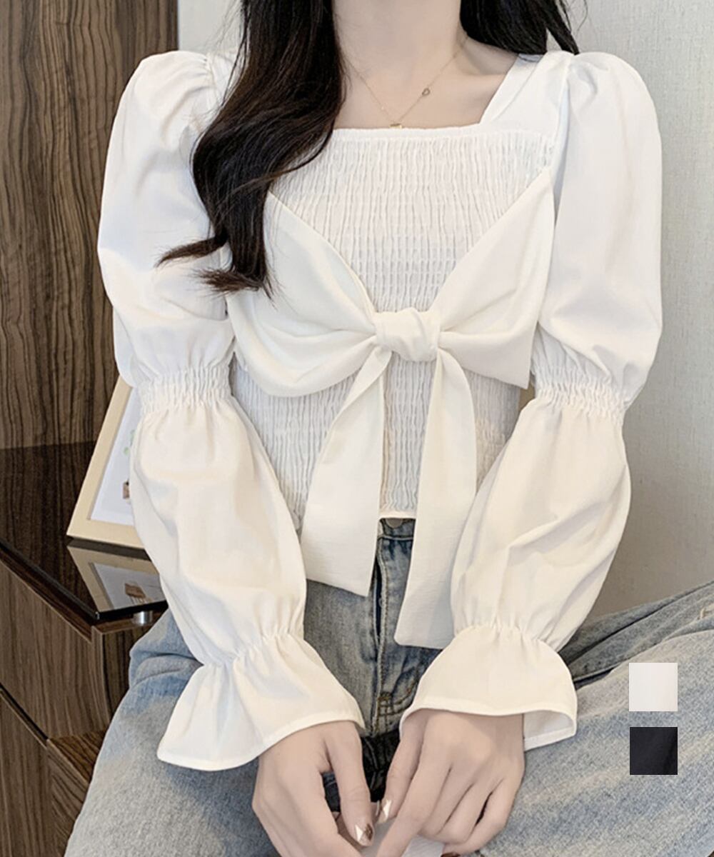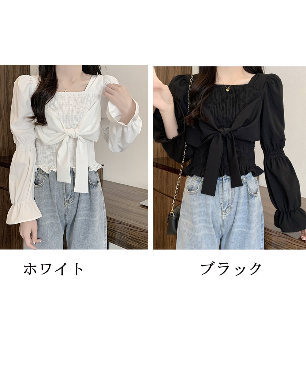 スクエアネックがデコルテを綺麗に魅せてくれるトレンドブラウス