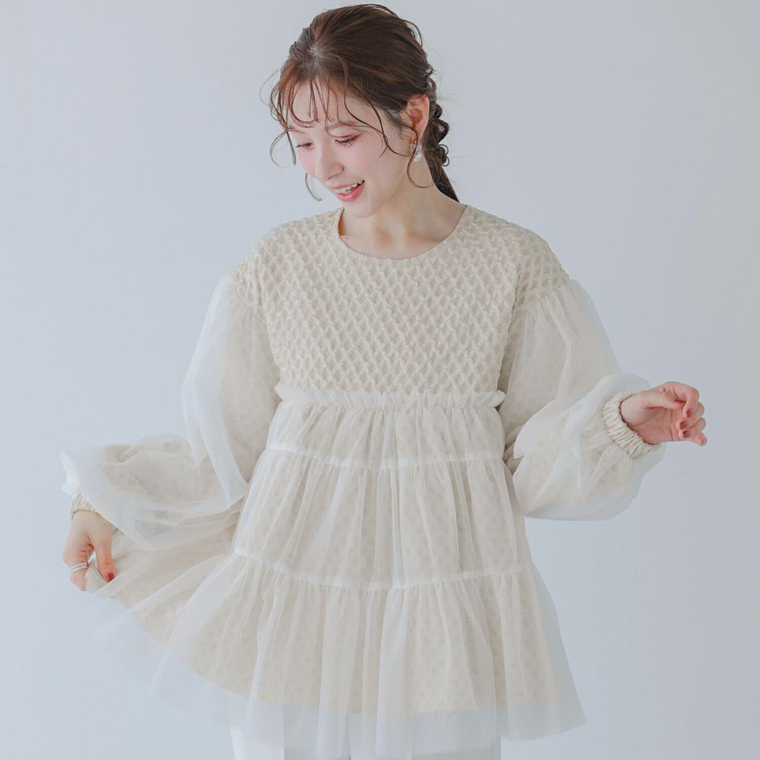 -軽やかなチュール切替デザインで、フェミニンな印象を演出!