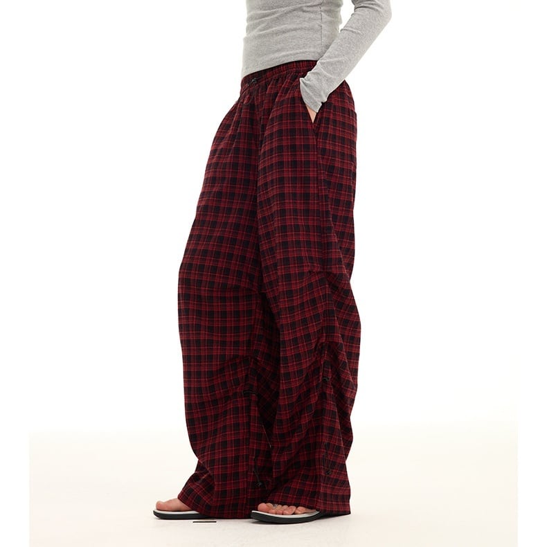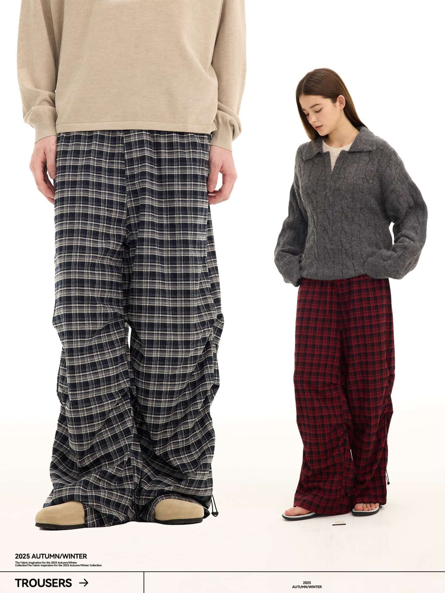 2025年秋冬新作のアメリカンレトロスタイルのチェック柄パラシュートパンツです。