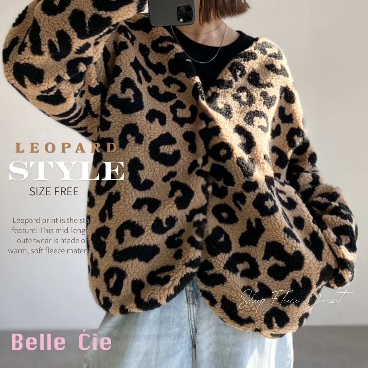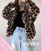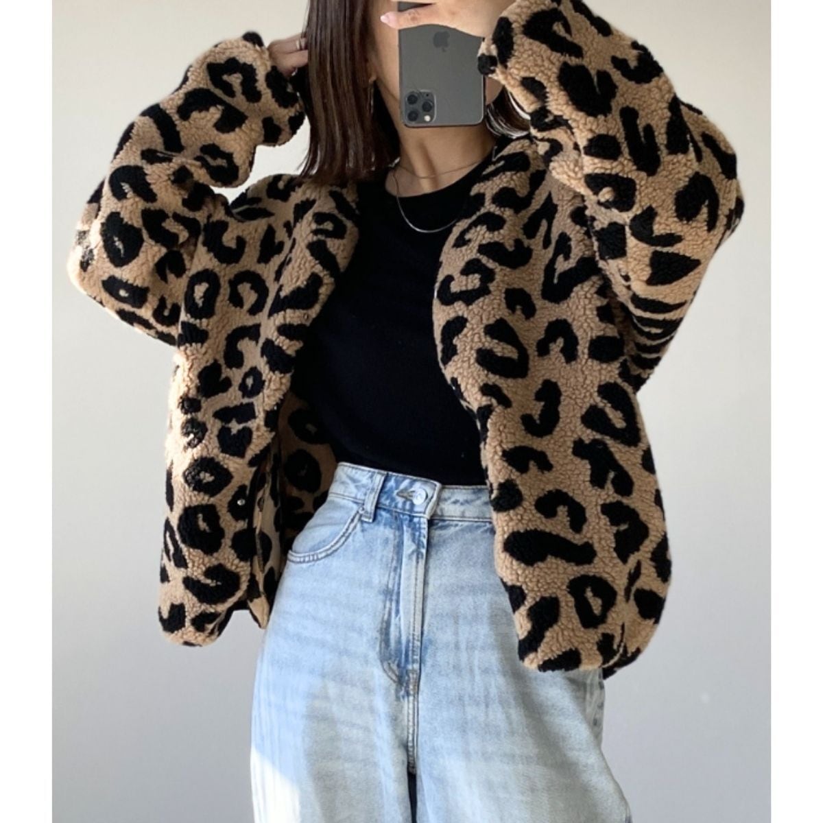 -柔らかなシープボア素材を使用したデザイン性の高いレオパード柄ジャケット!韓国ファッションを感じさせるトレンドアイテムです。
