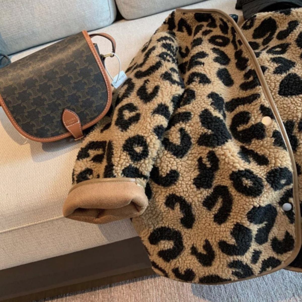 -もこもこ素材で暖かく、存在感あるレオパード柄が魅力
