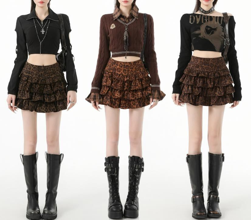 2025秋冬新作 ボトムス 女 レディース ハイウエスト スエード レオパード柄 ミニスカート 台型スカート | Fashionshop Kuuu571 |StylishでおしゃれなFashion好きな人達へ