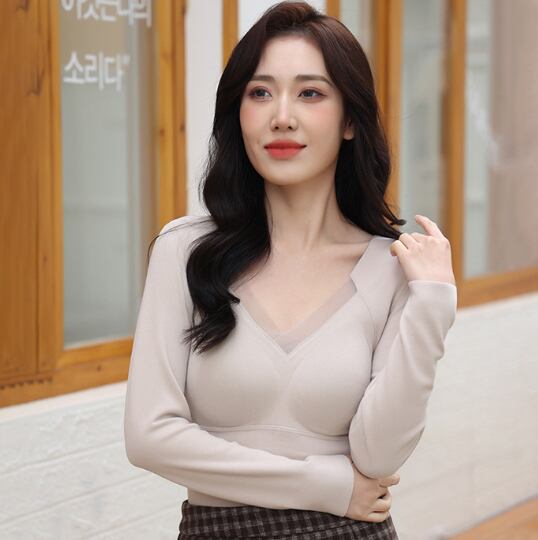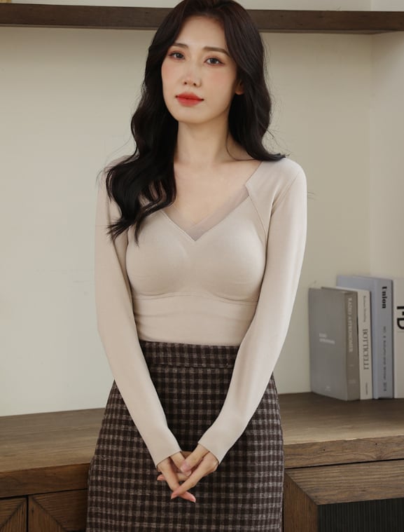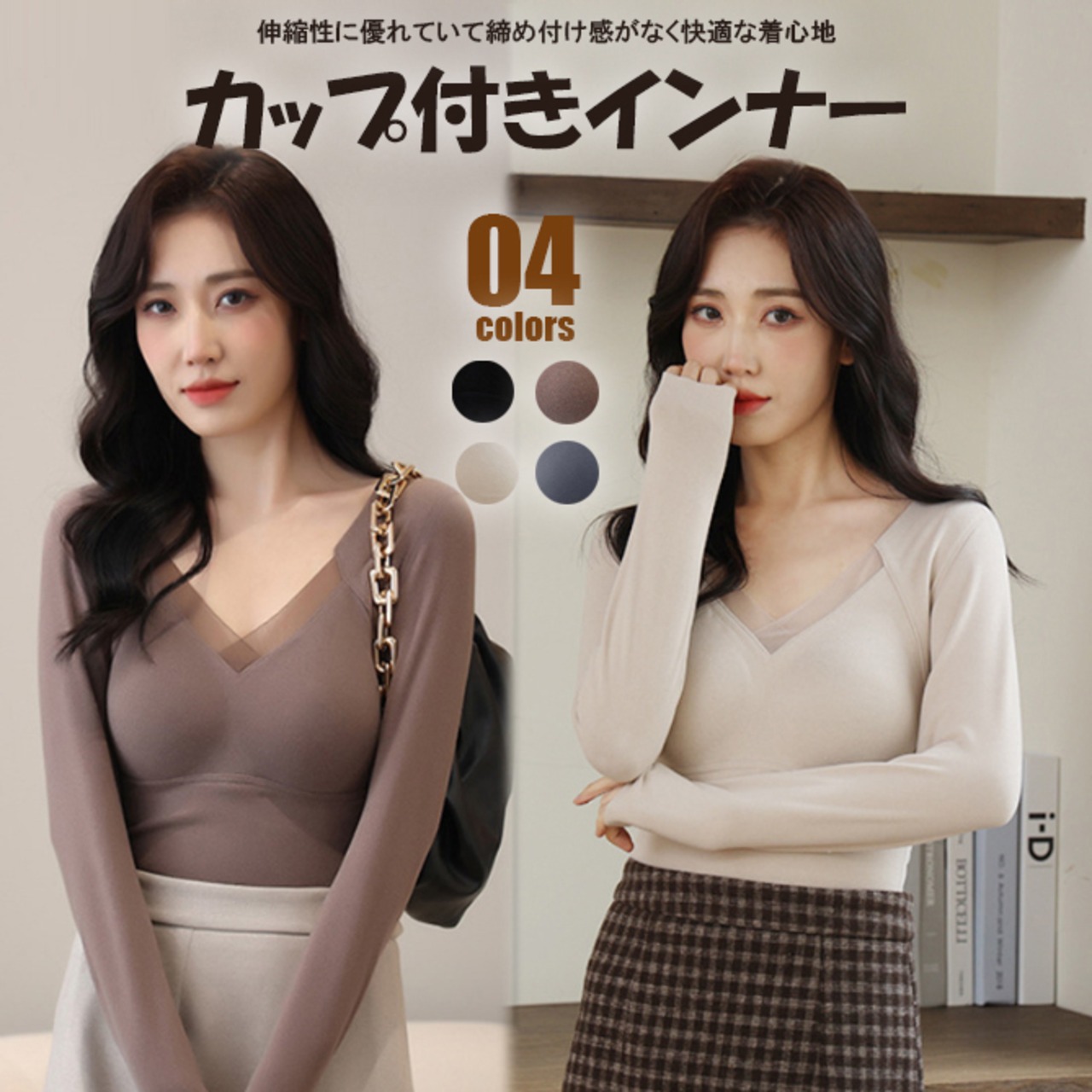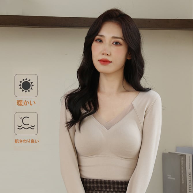 レディース インナー 下着 保温 Vネック 長袖 ストレッチ 伸縮 カットソー 切替レース 万能 あったか | Fashionshop Kuuu571 |StylishでおしゃれなFashion好きな人達へ