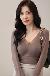 ・広めのVネックで見えにくく、デコルテをスッキリ美しく魅せます。