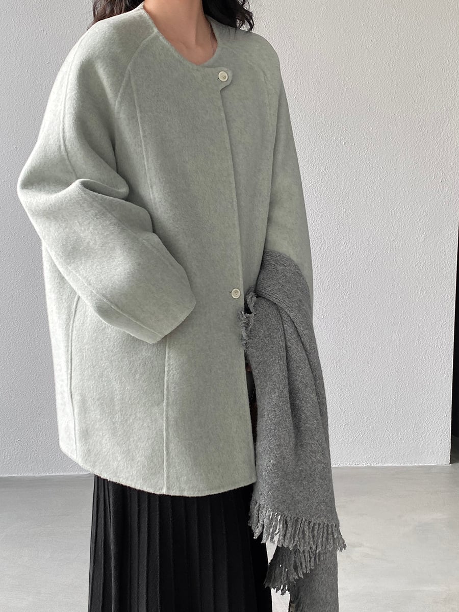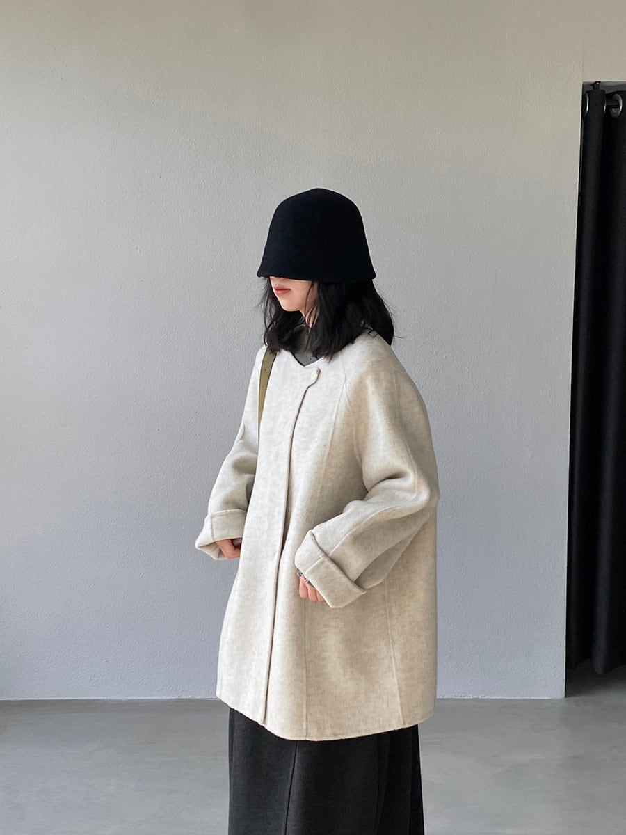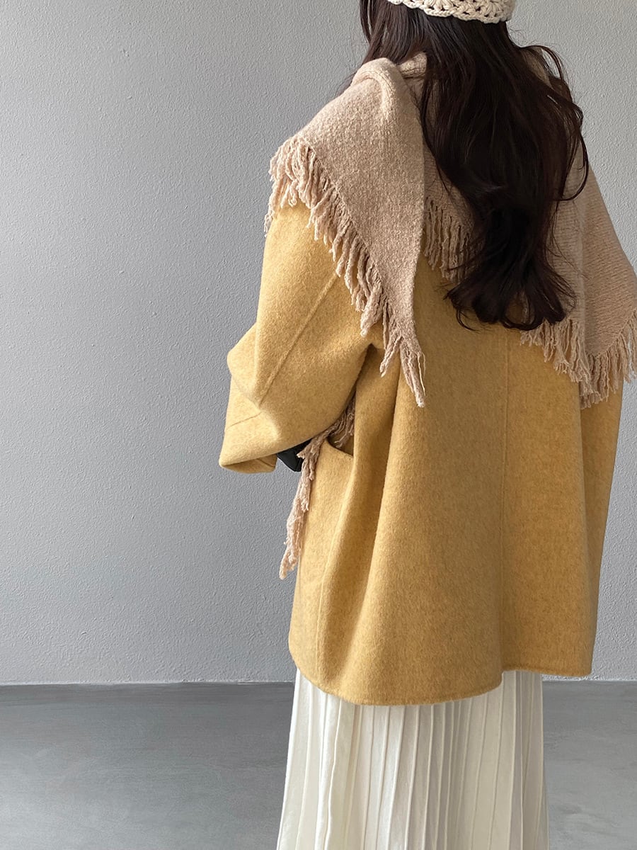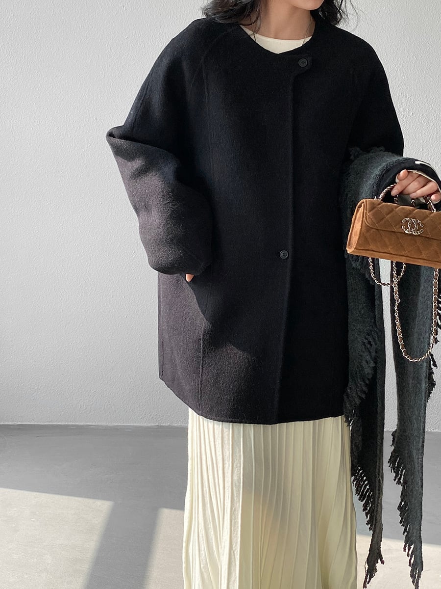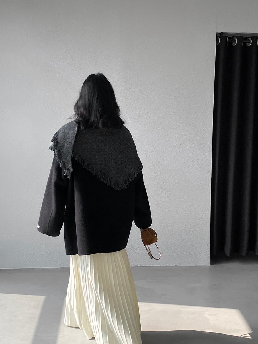 秋冬シーズンにぴったりな、マフラー付きダッフルコートが新登場!ウール100%の素材感が心地よい温もりを提供し、シルエットも非常にゆったりとしたデザインです。