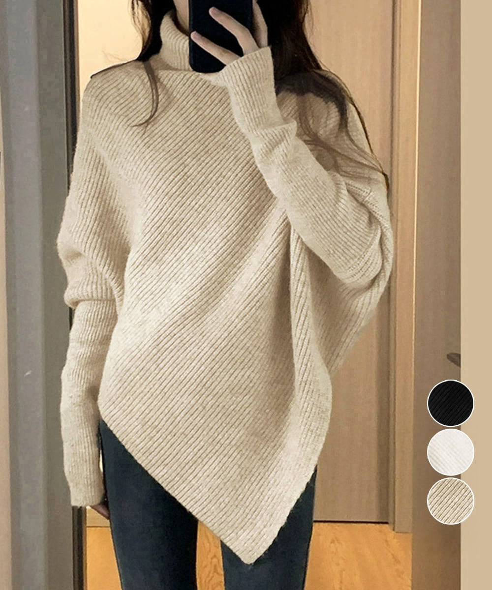 洗練されたシャープな印象を与えるハイネックニットセーター 不規則デザインが登場しました!独特の不規則なデザインが魅力的で、スタイリングに個性をプラスします。シンプルなボトムスとの組み合わせでも、存在感を発揮する一着です。秋冬シーズンにぴったりの快適な着心地で、カジュアルシーンからオフィスまで幅広く活躍できます。