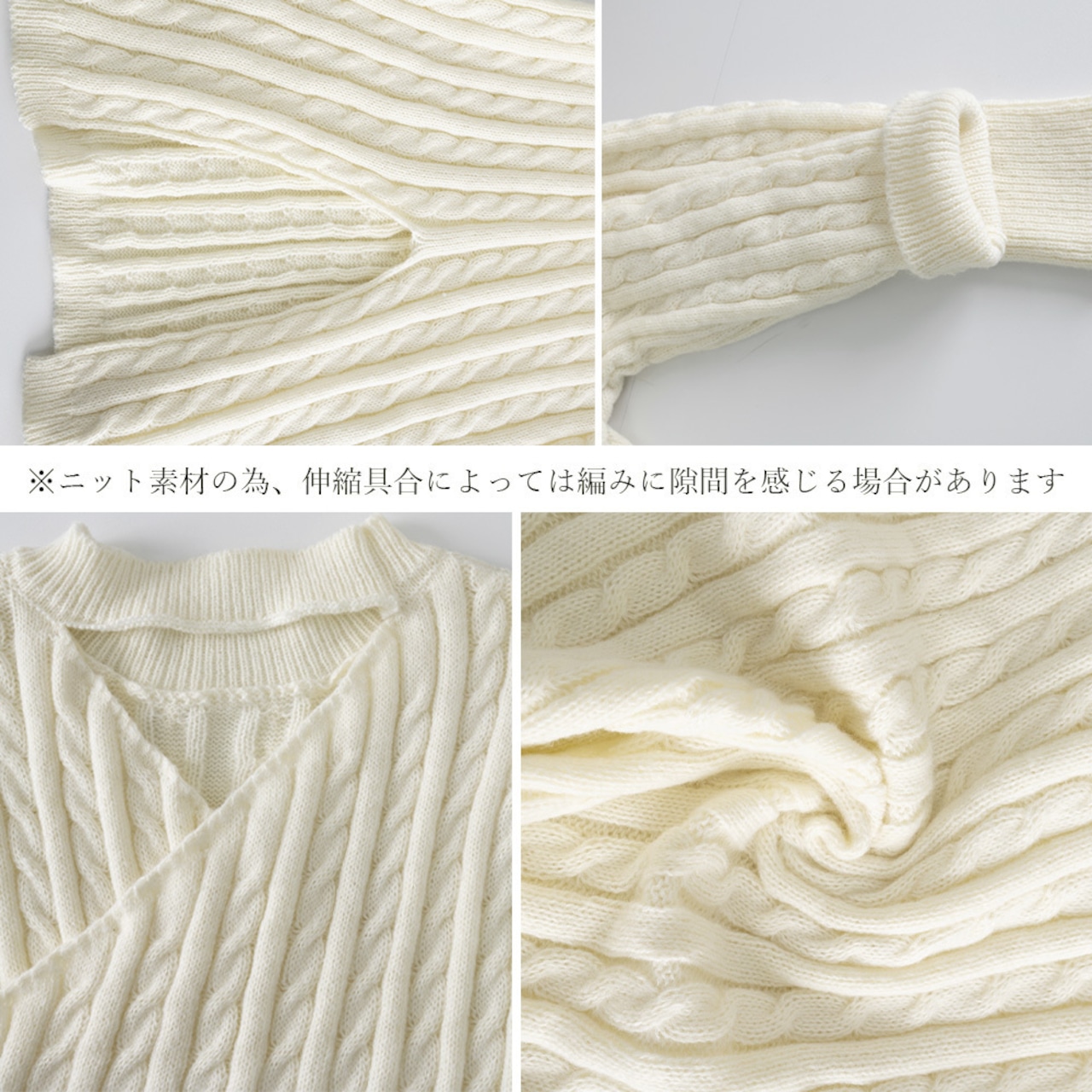 ケーブル編みの柔らかな質感が特徴で、セクシーな雰囲気を演出しつつ、タイトなシルエットでボディラインを美しく引き立てます。春秋冬と三シーズン着回しができるきれいめスタイルのアイテムです。