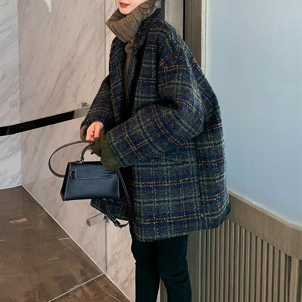 カジュアルにもエレガントにも合わせやすいオーバーコートは、リラックスしたシルエットで着やせ効果も期待できます。 秋冬のコーディネートにぴったりなチェック柄は、どんなスタイルにもマッチし、存在感を放ちます。また、軽い着心地で動きやすく、日常使いからちょっとしたお出かけまで幅広く活躍します。