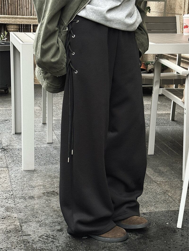 ワイドシルエットで動きやすさ抜群。リラックスした着こなしが可能です。また、細部に施されたサイドレースアップが、さりげないアクセントになり、さまざまなコーディネートにマッチします。2026年春新作のトレンドを先取りする一着です。