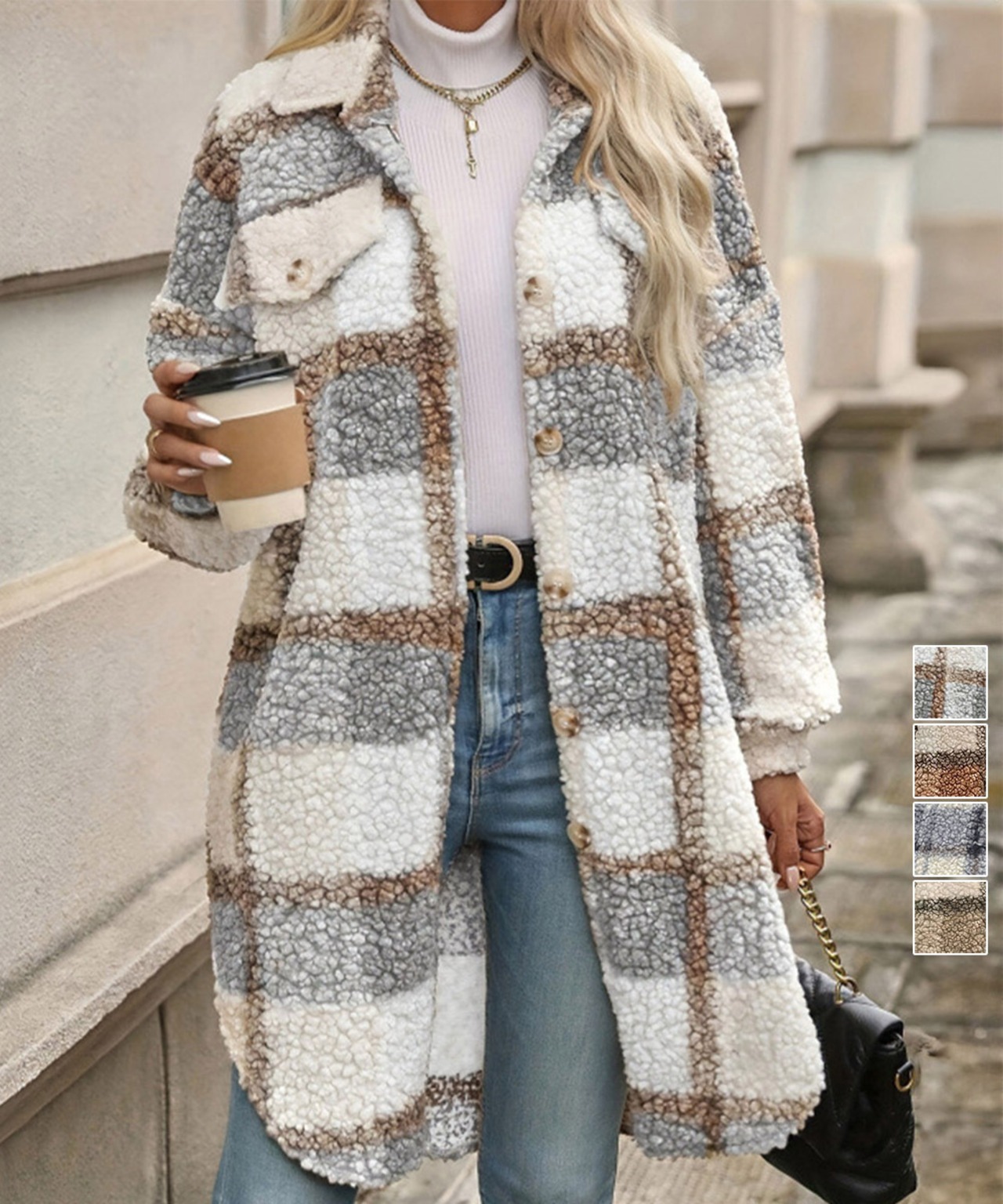 暖かさを感じさせるもこもこしたチェック柄ボアは、薄手でもしっかりとした存在感を持つため、コーディネートのアクセントとしても大活躍!ゆったりとしたデザインで、リラックスした着心地が楽しめます。デニムパンツやワンピースとも相性がよく、シーンを選ばず活用できるのが嬉しいポイントです!