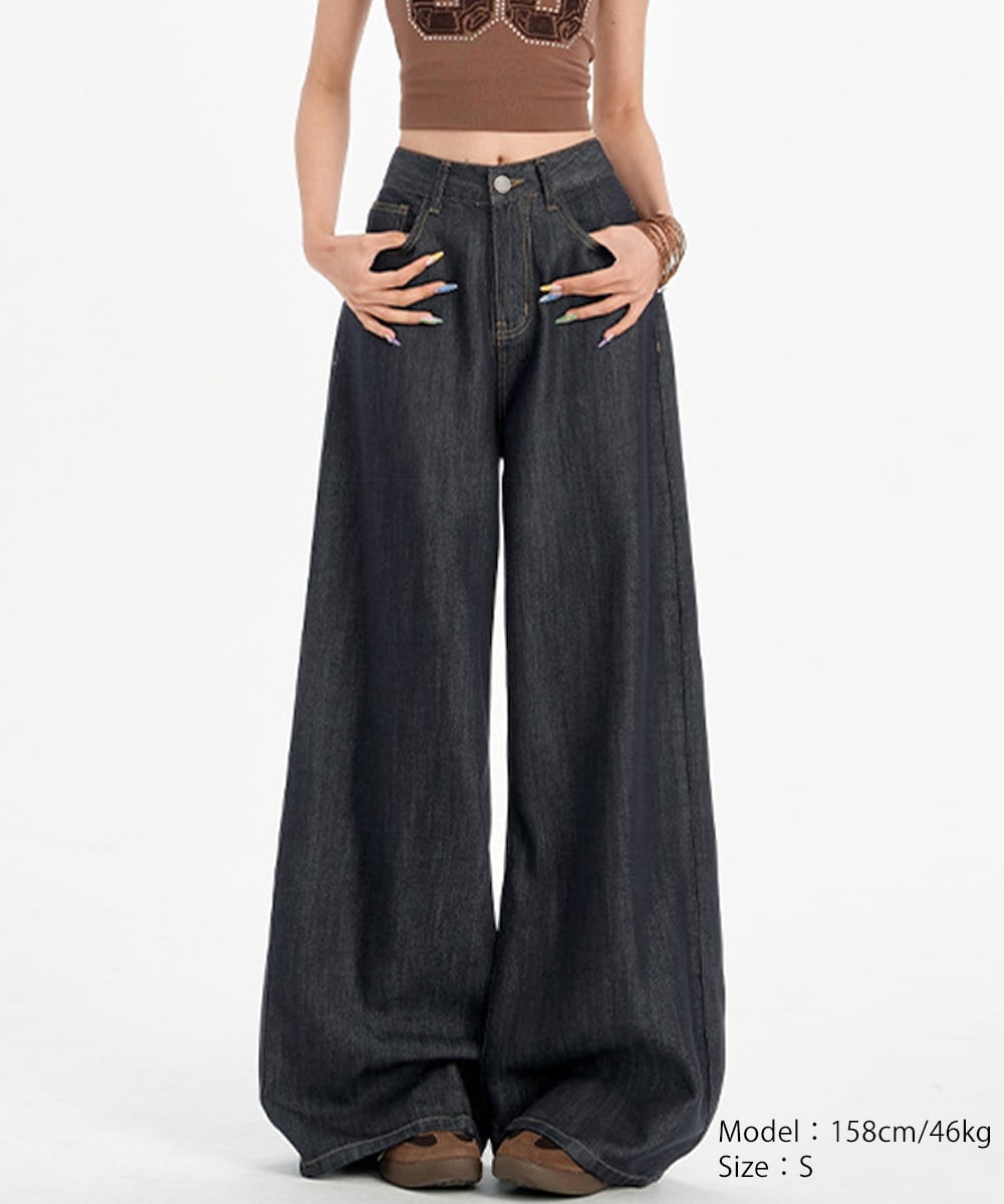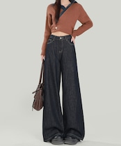 ハイウエストで脚長に見える、こなれ感のあるワイドデニムパンツ。